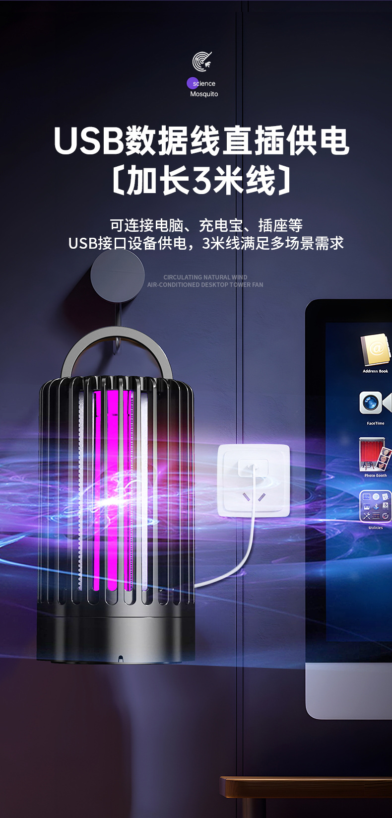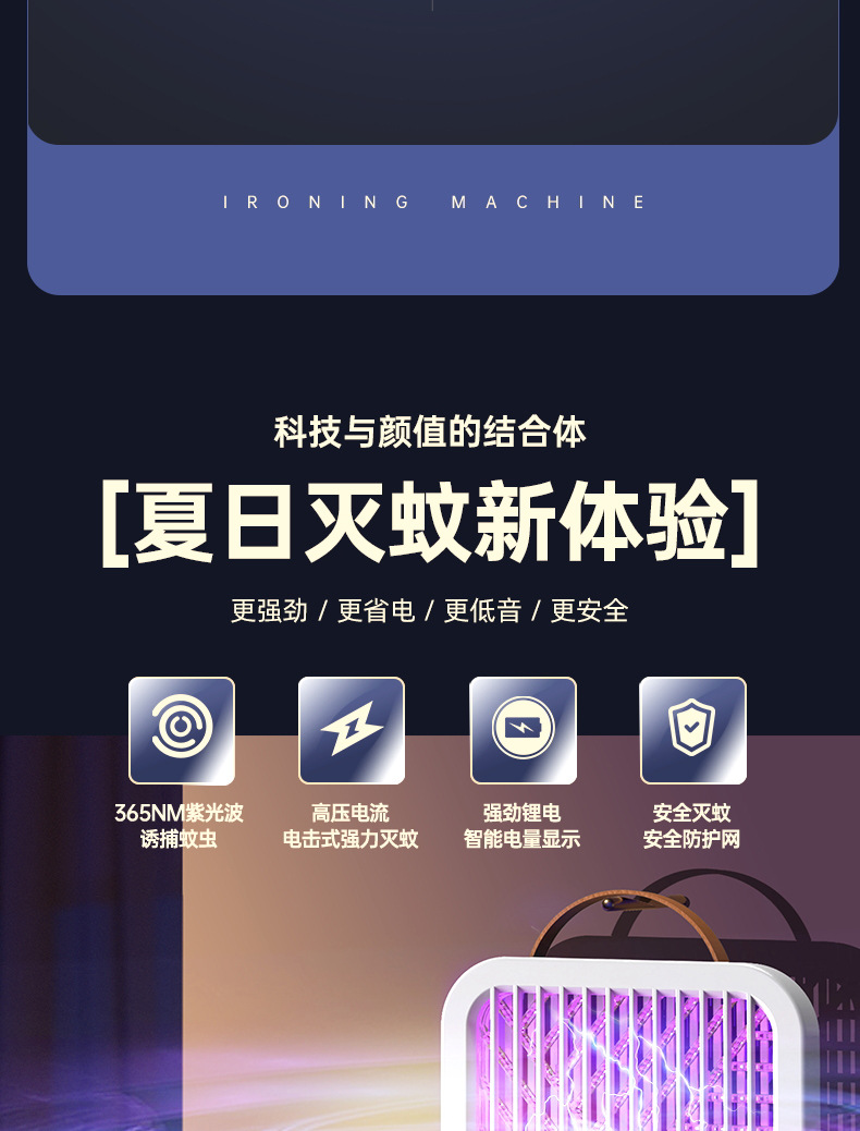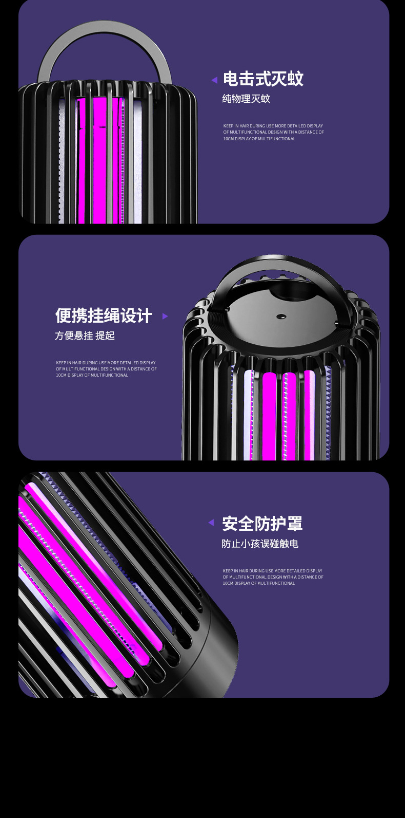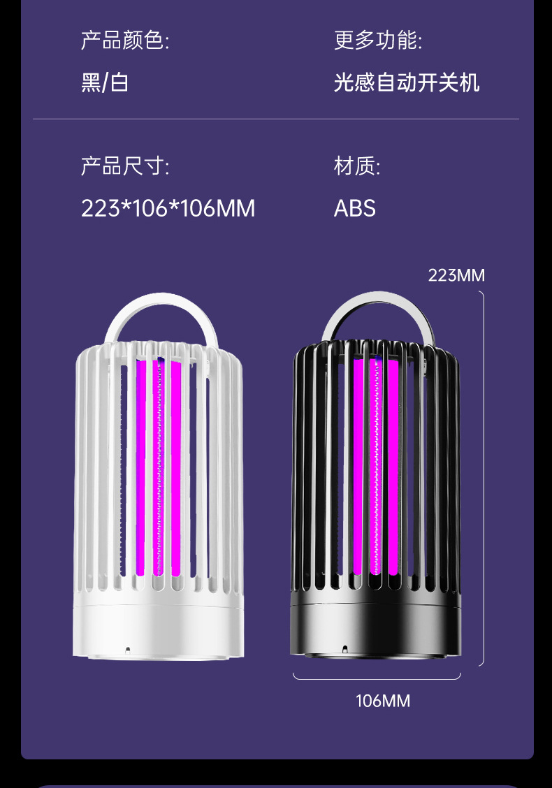 跨境新款电击灭蚊灯家用室内驱蚊器便携式充电户外诱蚊捕蝇灯批发