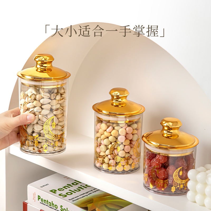 月亮金银密封罐食品级高硼硅厨房防潮杂粮茶叶透明储物罐收纳储存