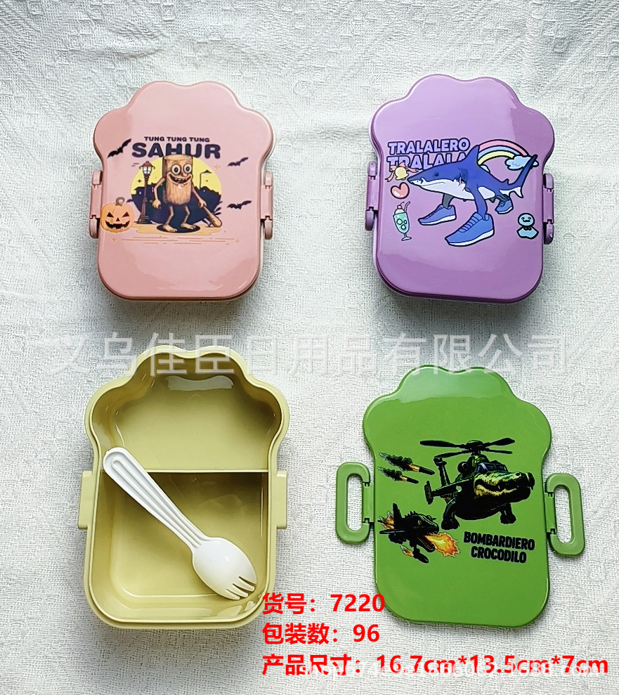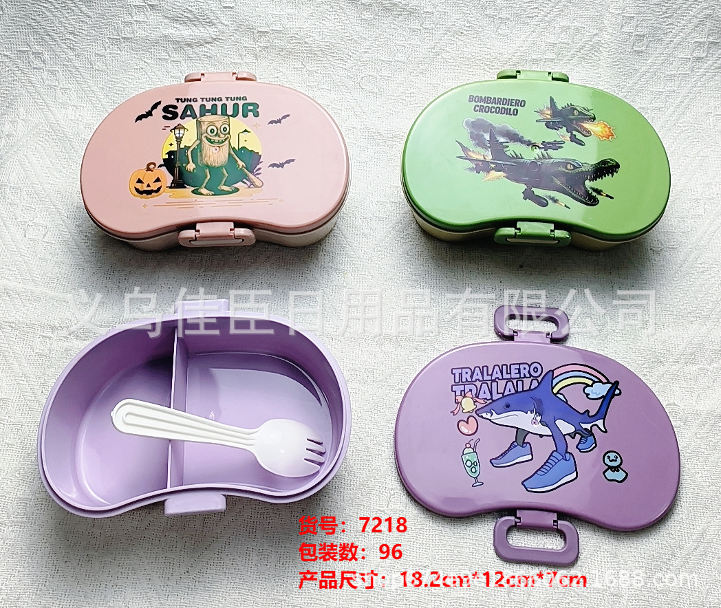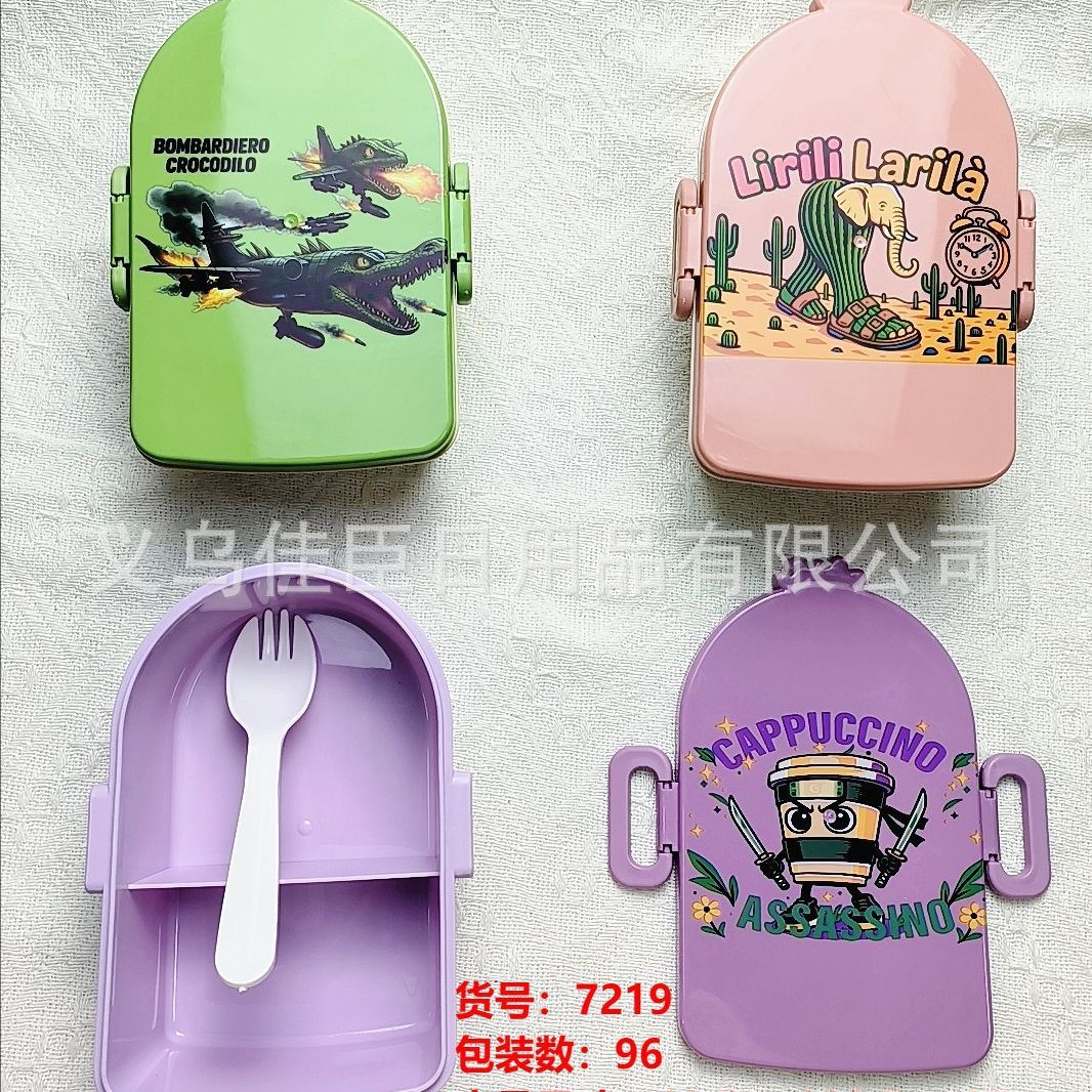 学生饭盒午餐盒便当盒山海经图案可爱儿童户外袋餐存储保鲜盒带餐
