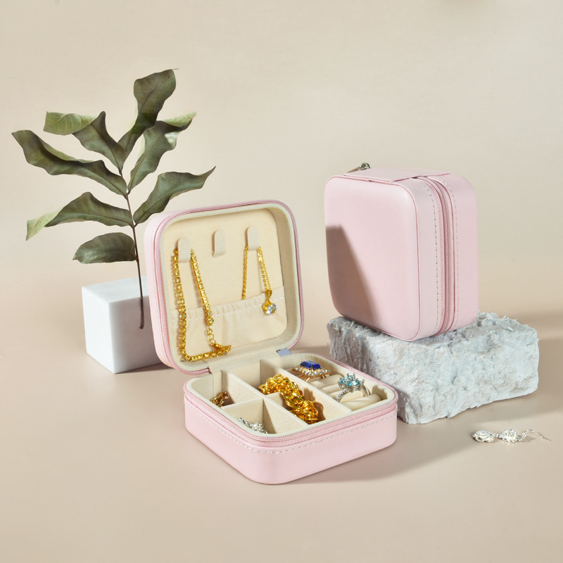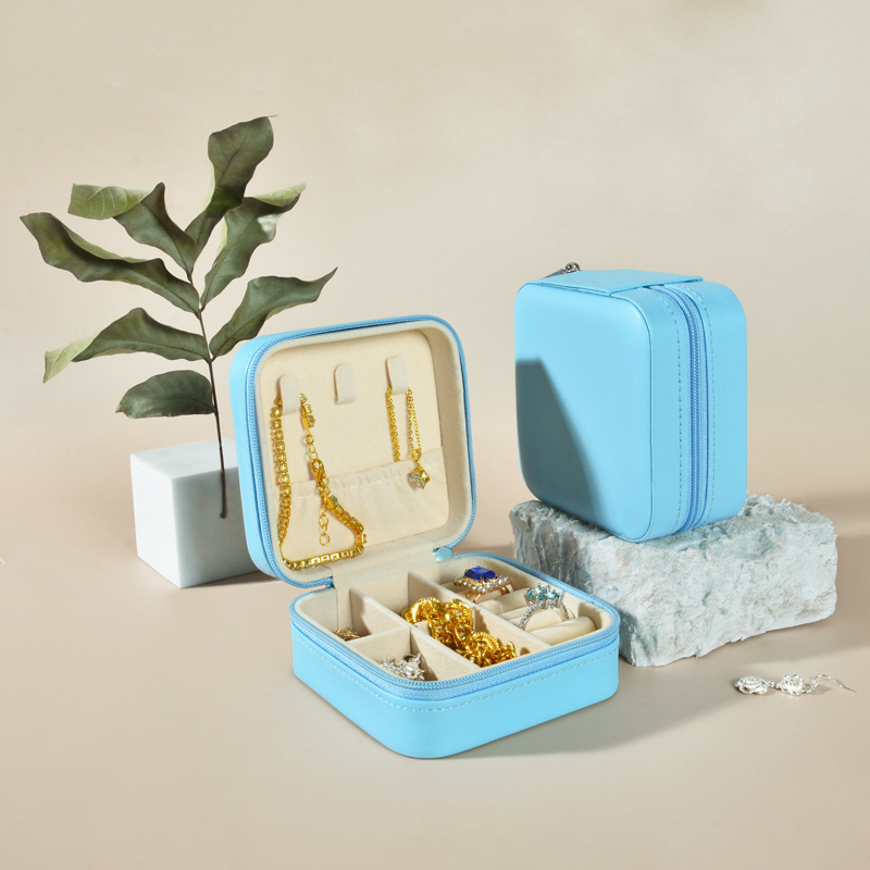 时尚精美珠宝盒耳饰项链丝绒盒首饰珠宝展示盒便携式旅行收纳盒