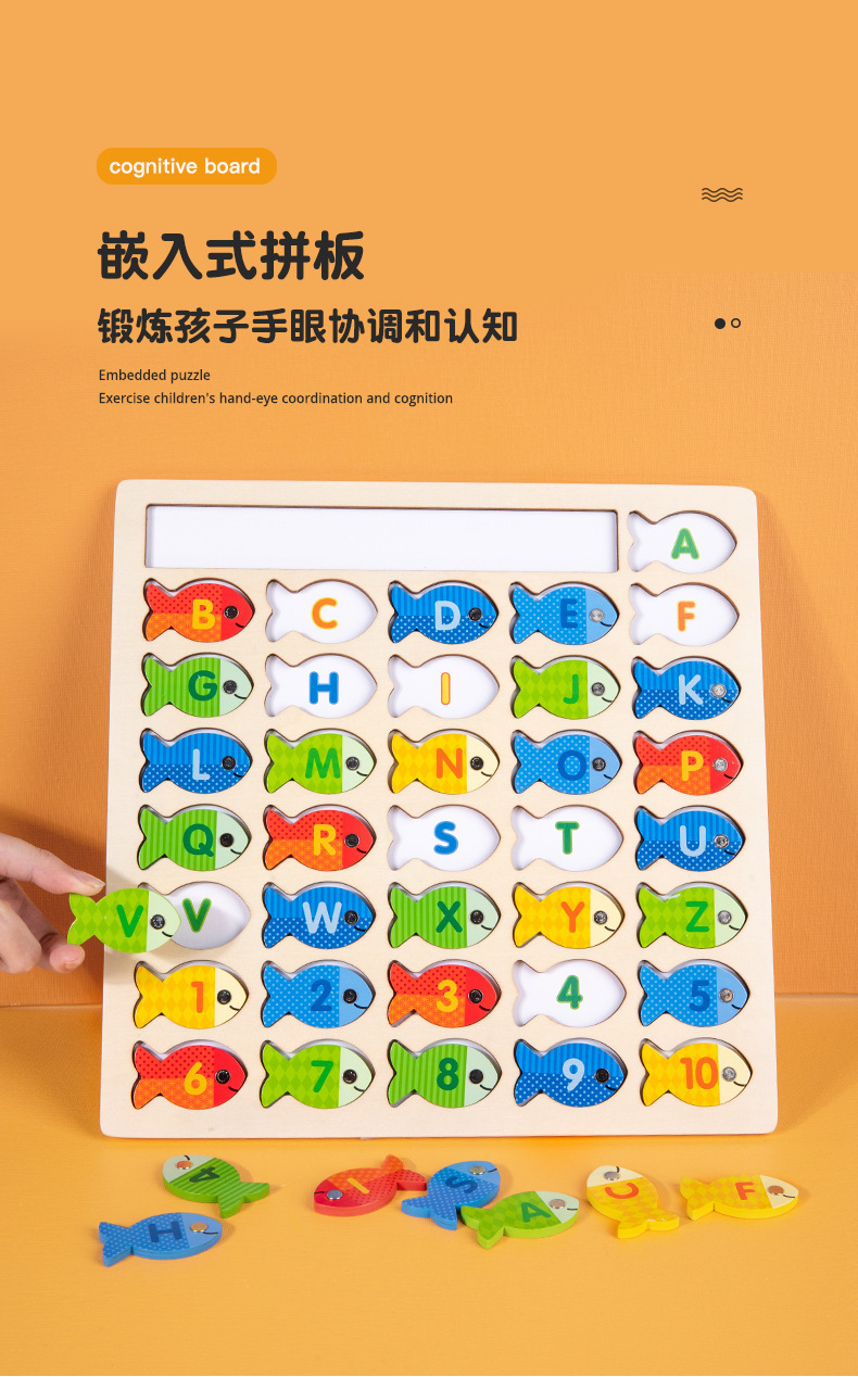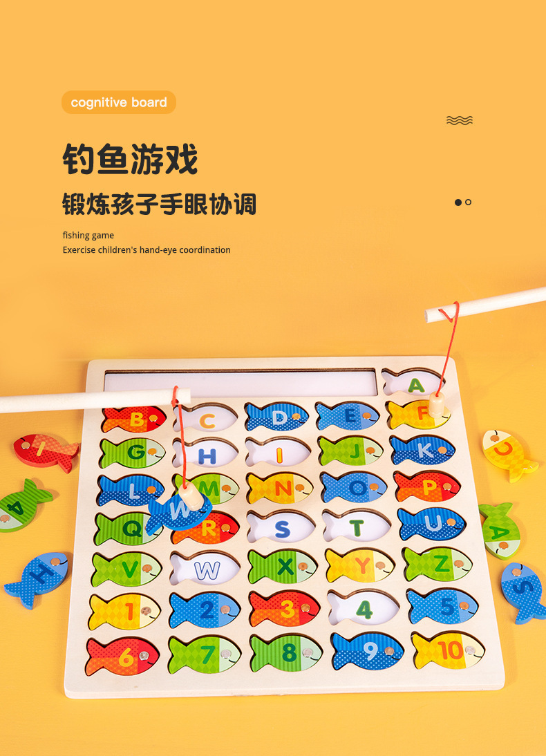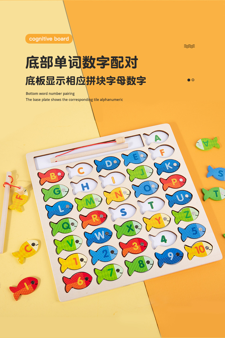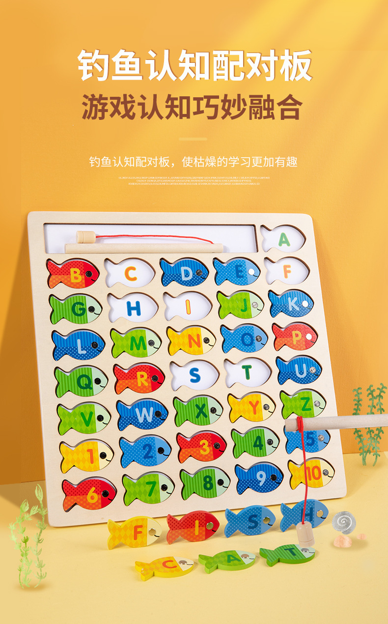 跨境木制字母数字认知磁性钓鱼板游戏 儿童形状配对早教益智玩具