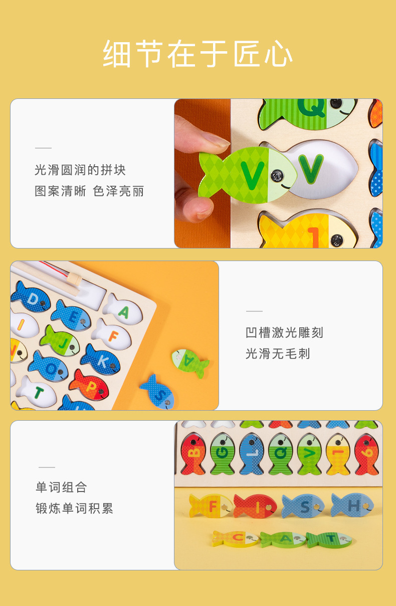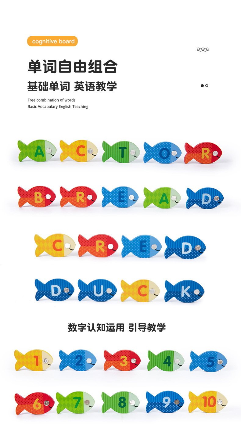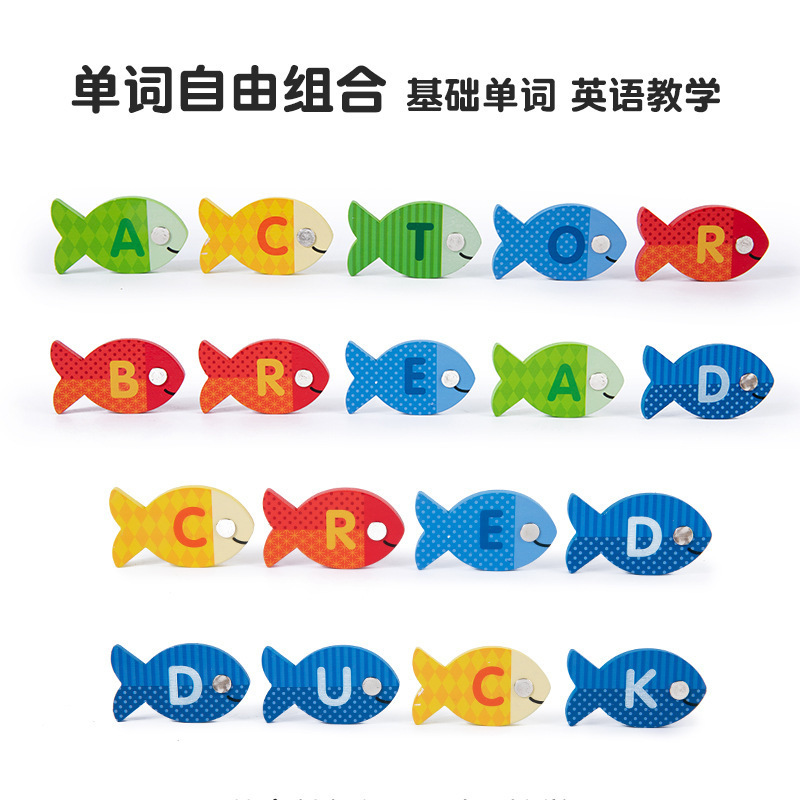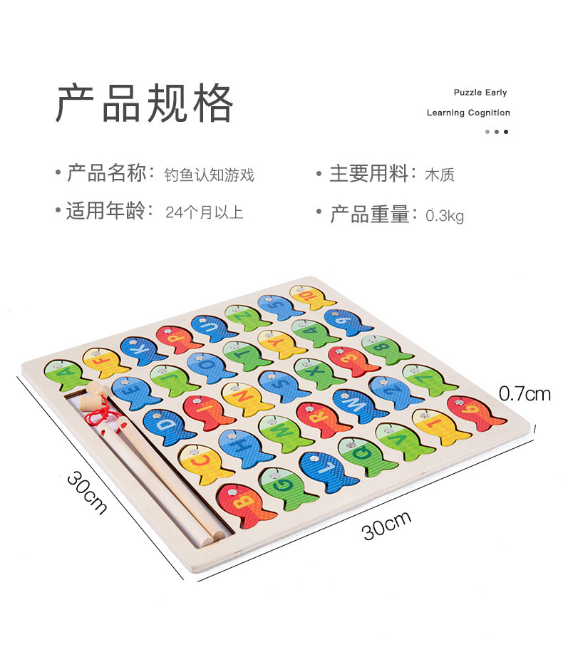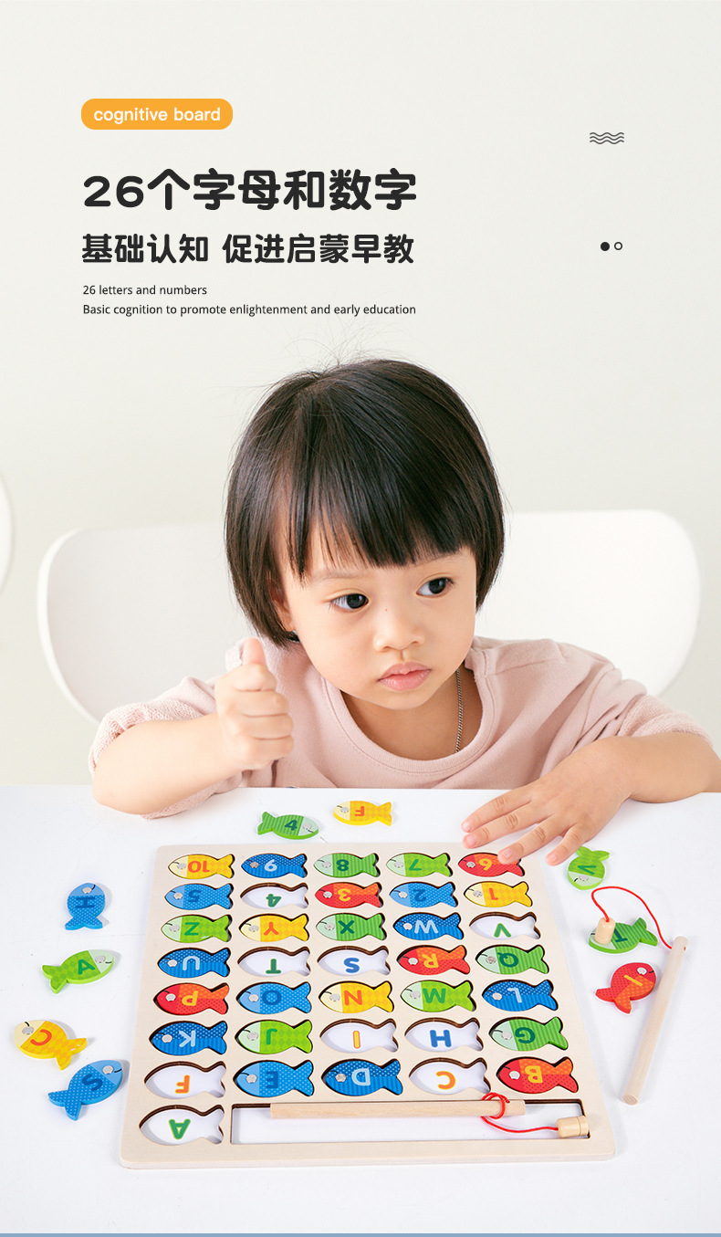 跨境木制字母数字认知磁性钓鱼板游戏 儿童形状配对早教益智玩具