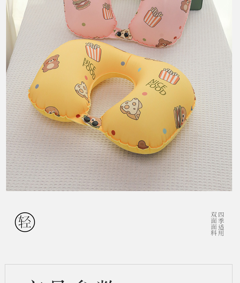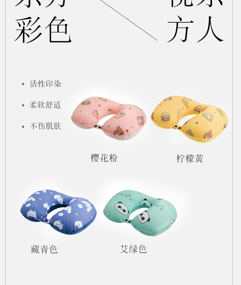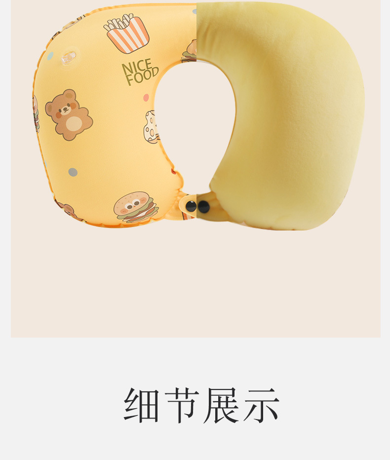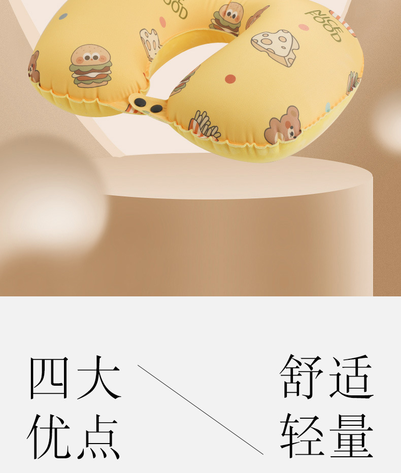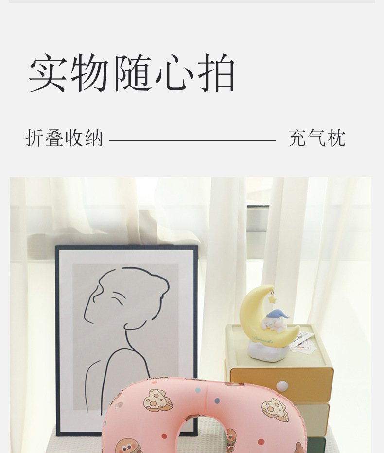 印花充气枕卡通按压充气u型枕便携收纳颈枕冷暖双面料旅行护颈枕