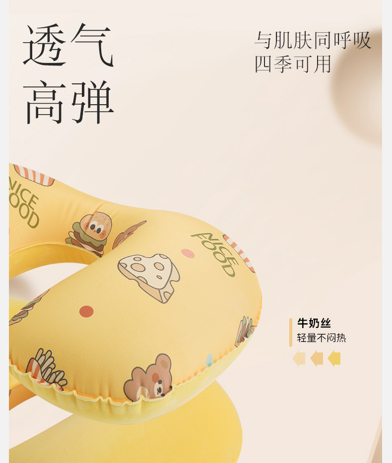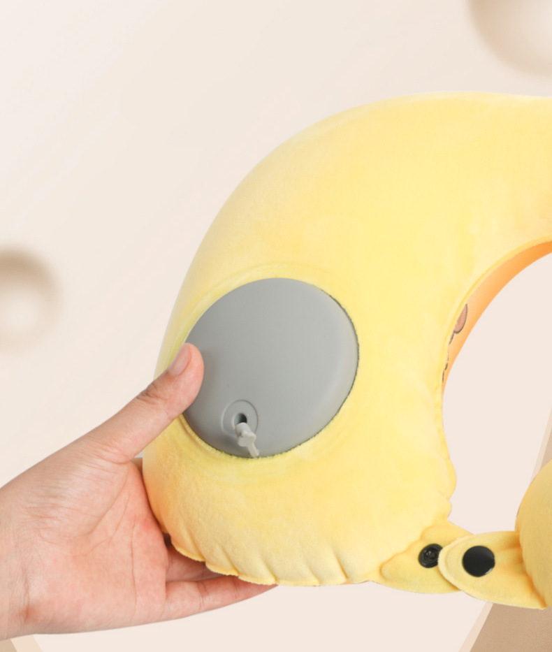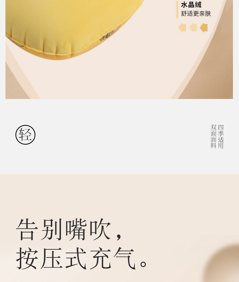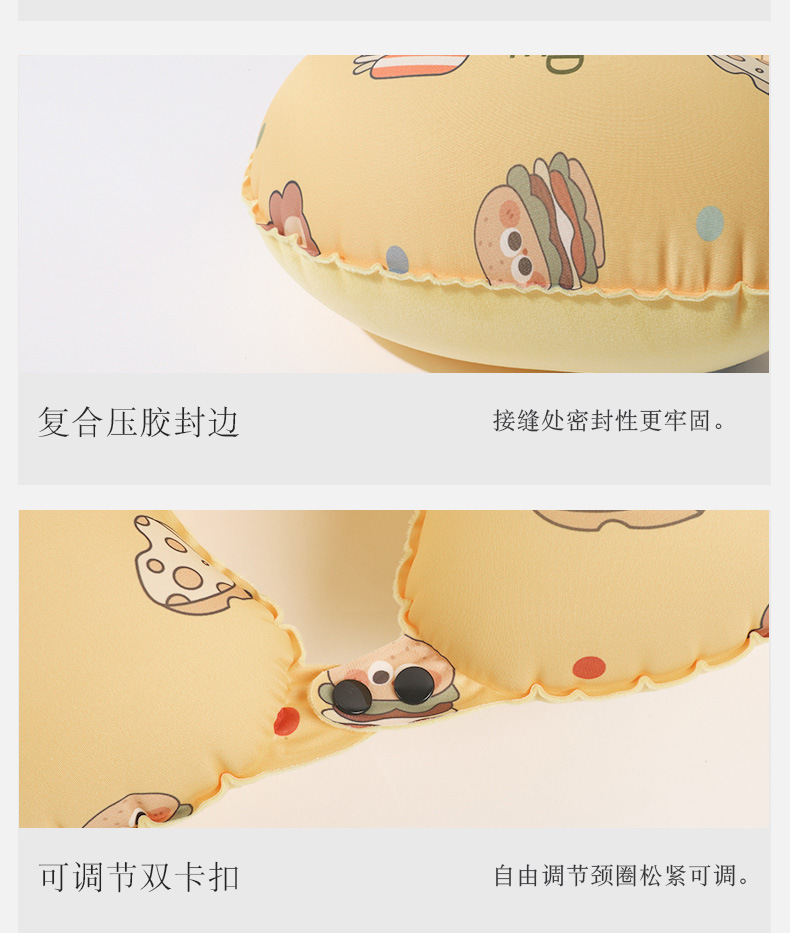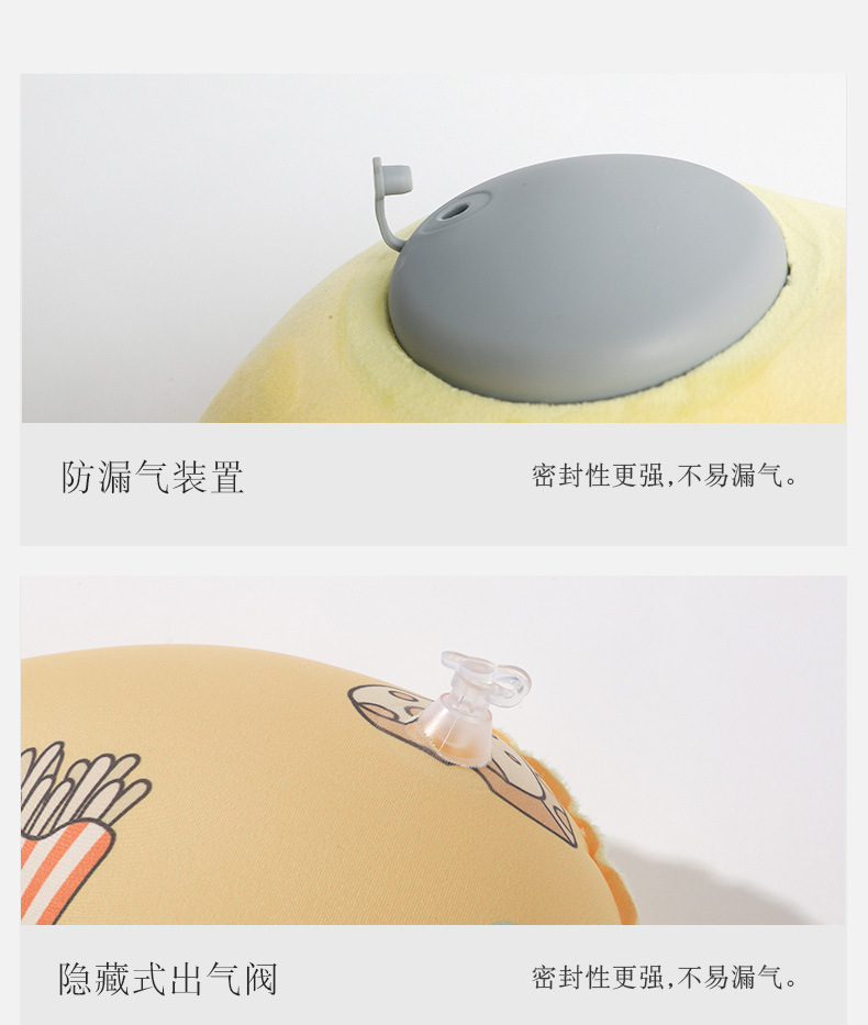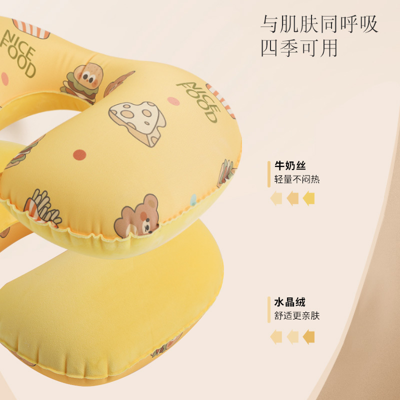 印花充气枕卡通按压充气u型枕便携收纳颈枕冷暖双面料旅行护颈枕