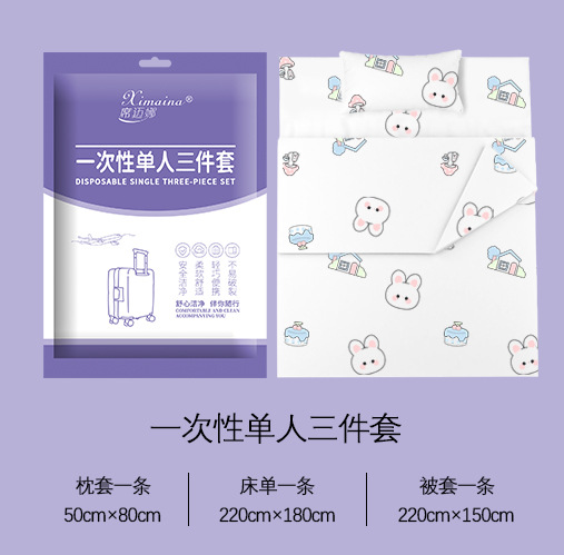 酒店四件套一次性床单旅行可裸睡加厚便携枕套养生馆亲肤免洗被套