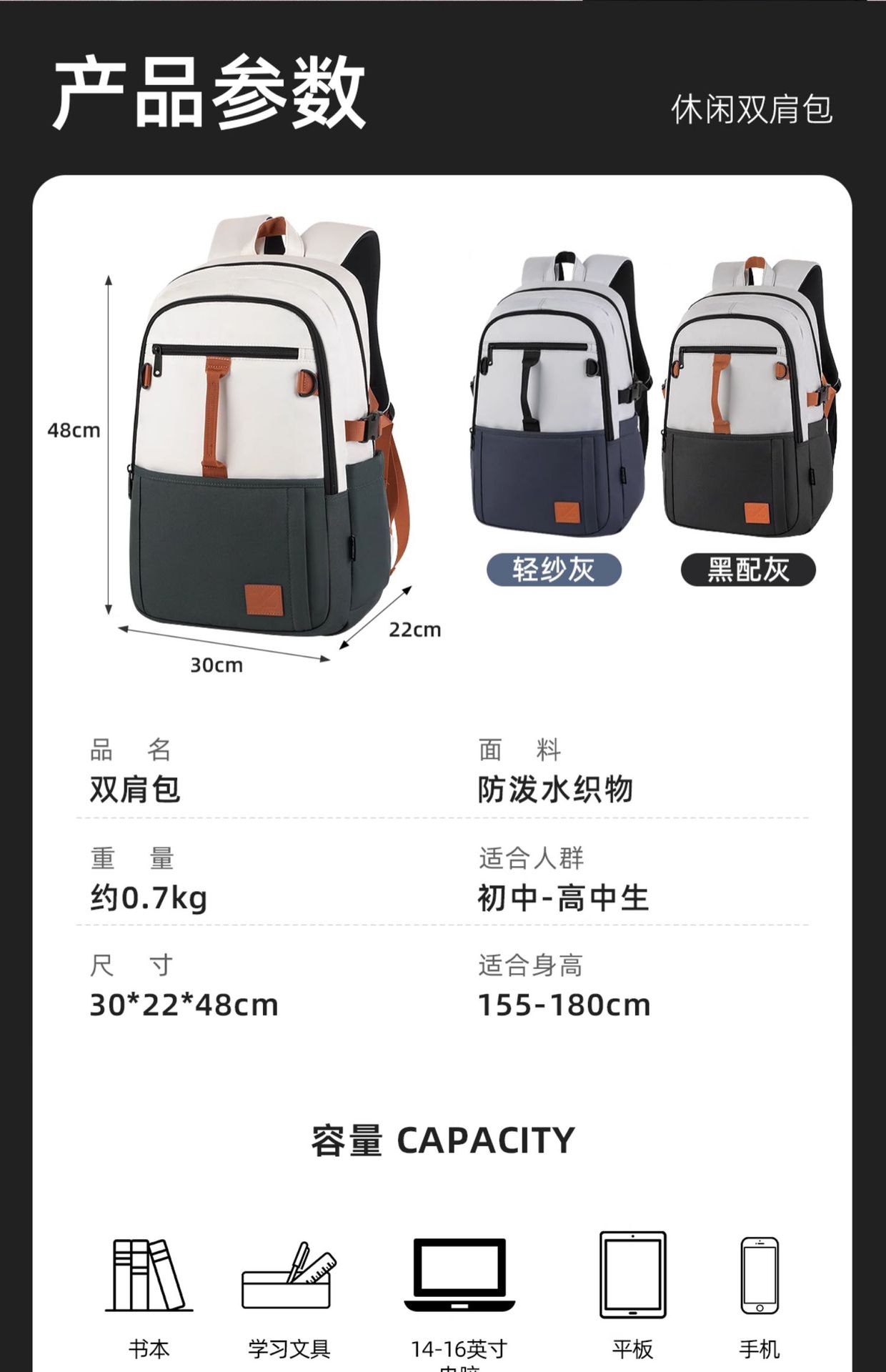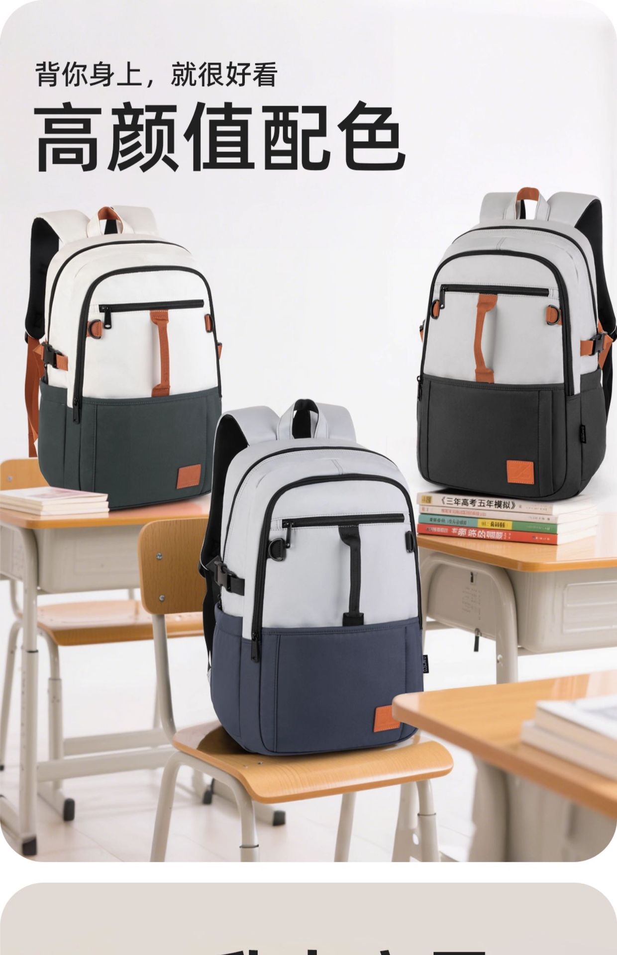 初高中学生书包批发休闲大容量双肩包男女同款防泼水耐磨百搭背包