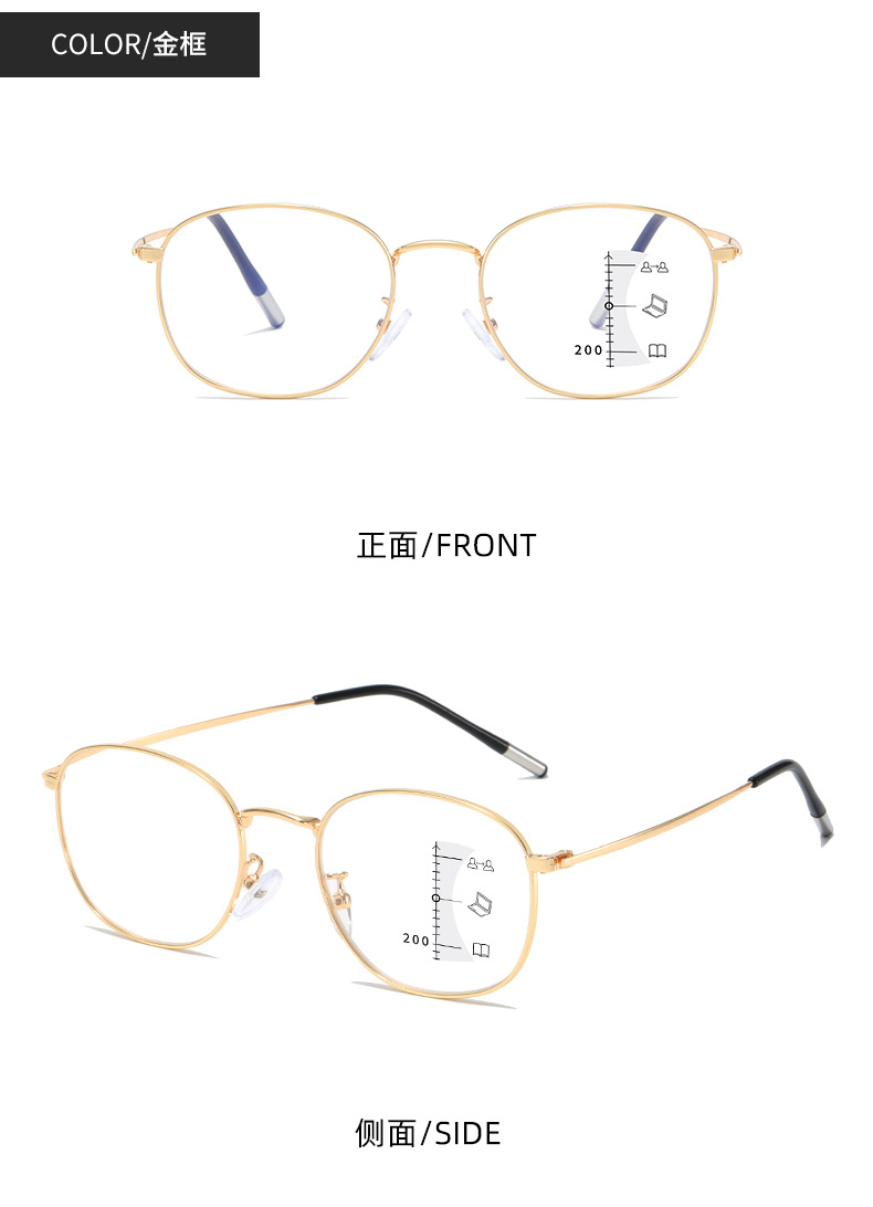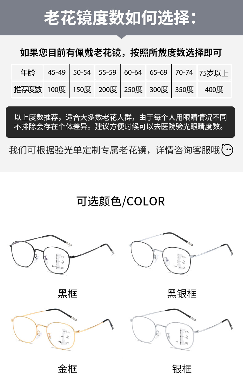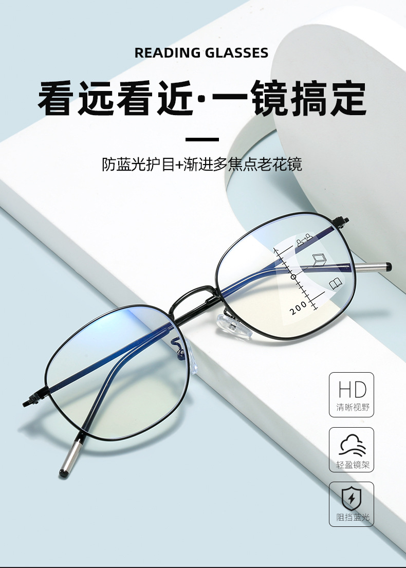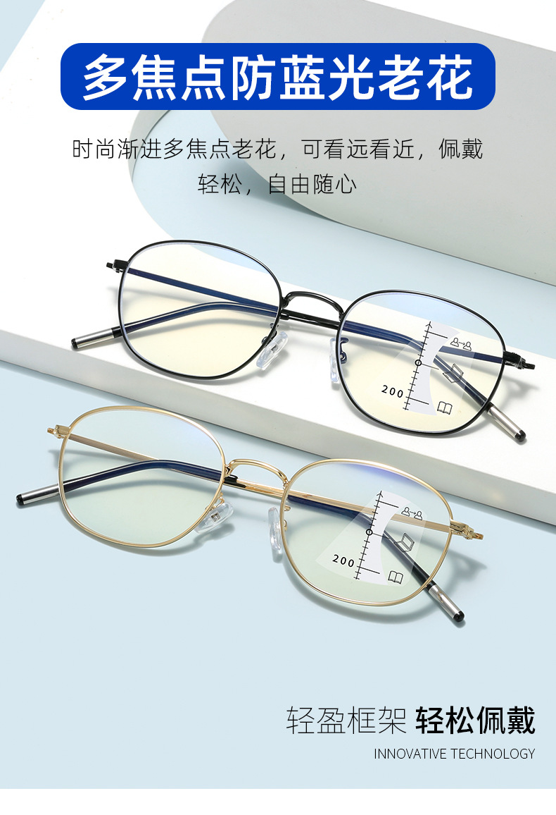 新款老花镜远近两用渐进多焦点超轻金属全框老人阅读防蓝光老花镜