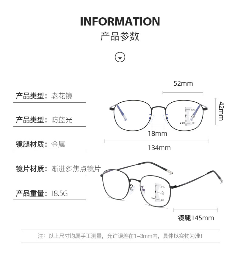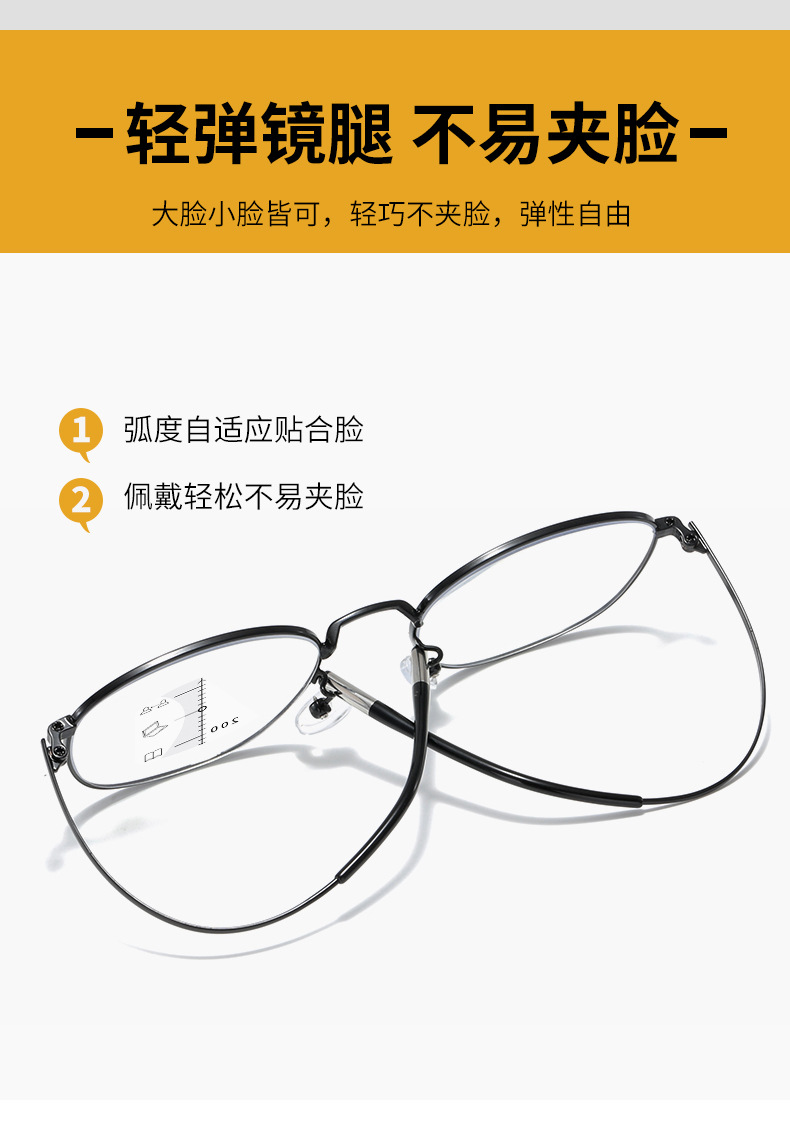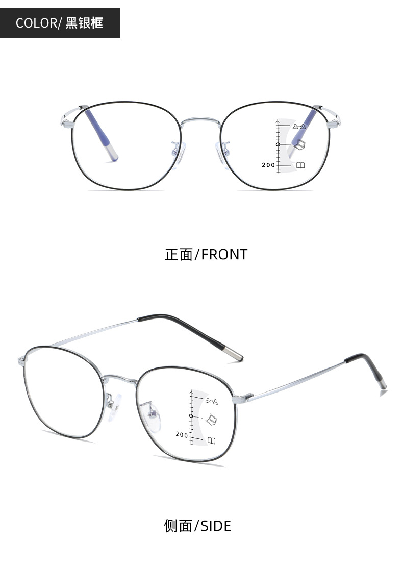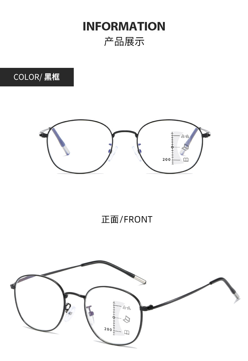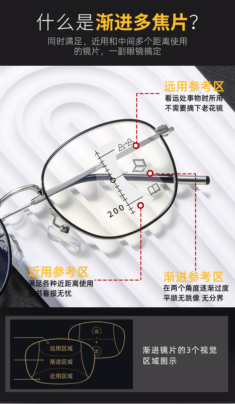 新款老花镜远近两用渐进多焦点超轻金属全框老人阅读防蓝光老花镜