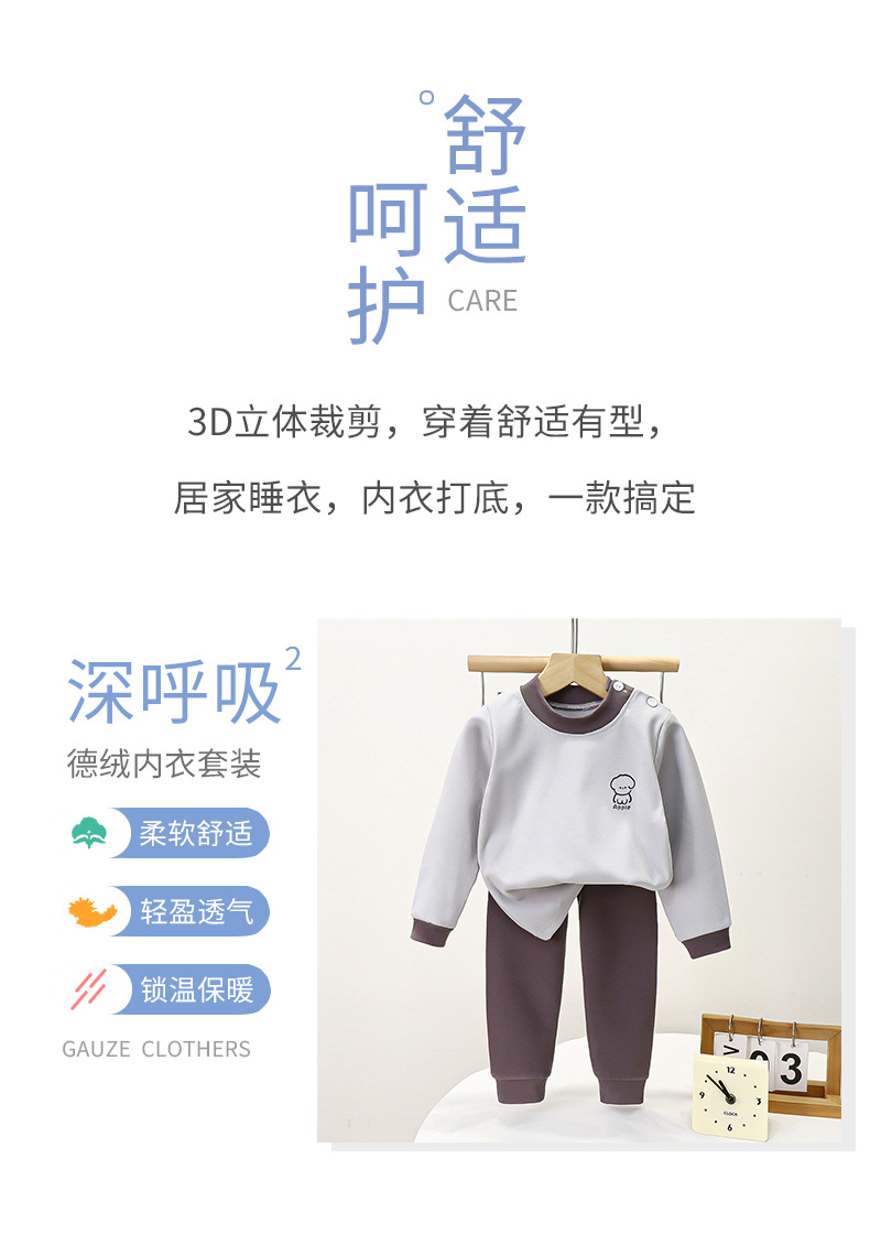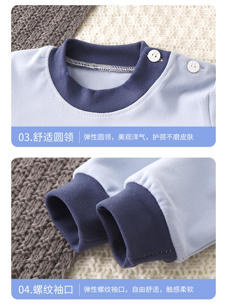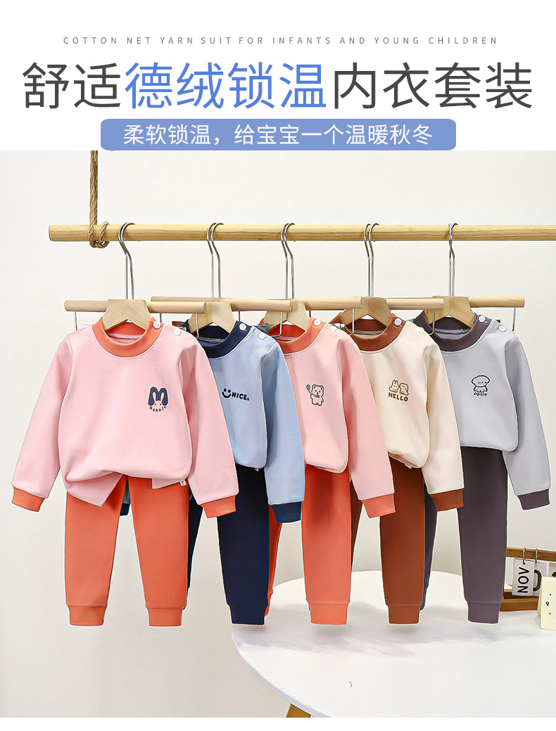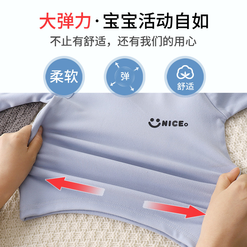 儿童秋衣秋裤秋冬款保暖内衣男女童纯色德荣套装圆领加厚打底上衣