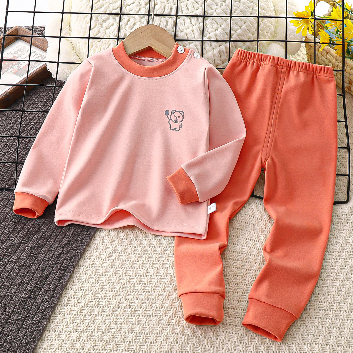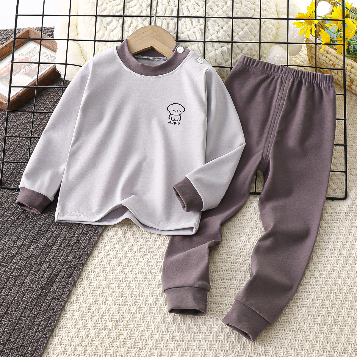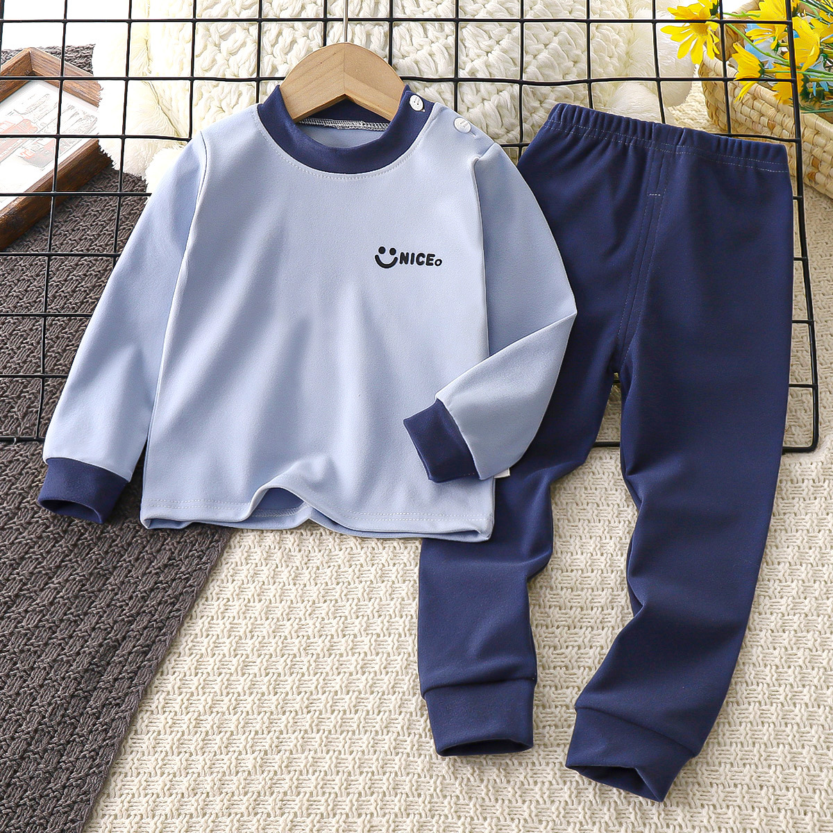 儿童秋衣秋裤秋冬款保暖内衣男女童纯色德荣套装圆领加厚打底上衣