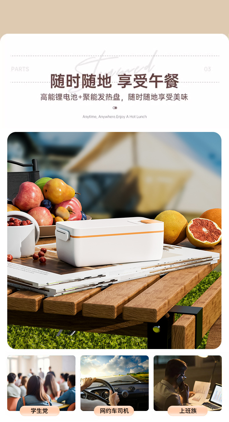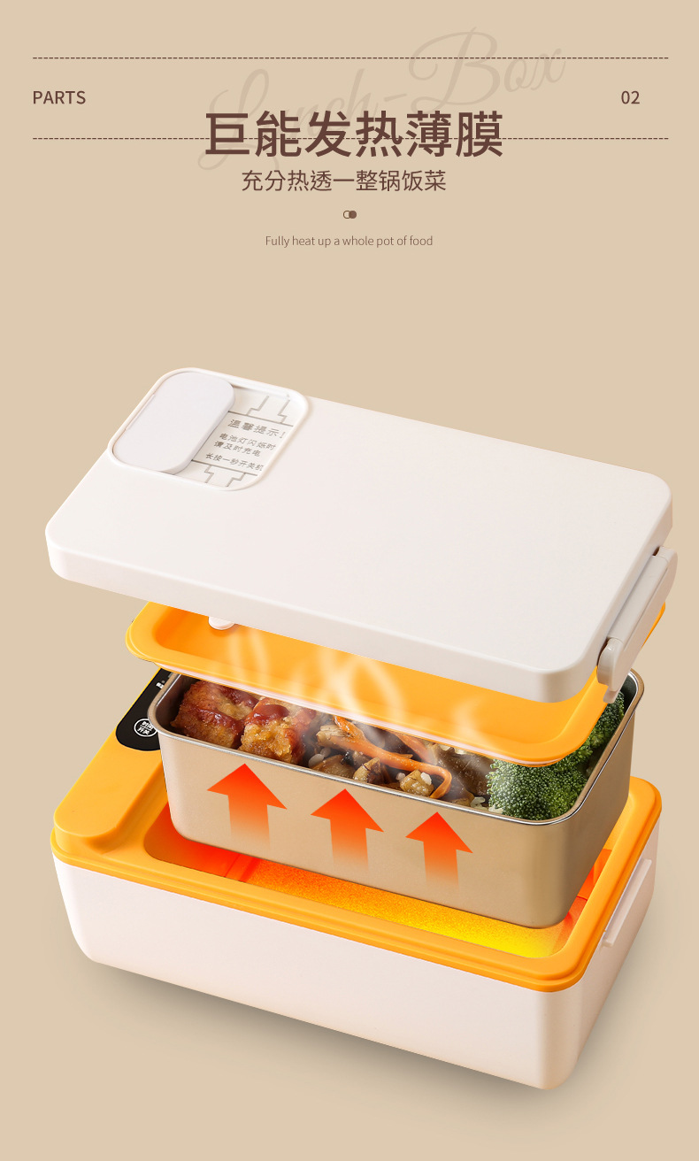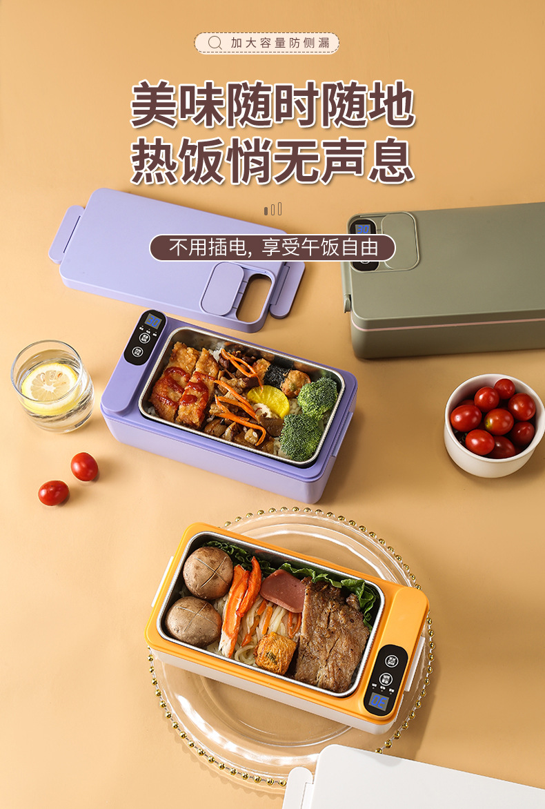 新款便携跨境充电学生大容量电热保温饭盒家用上班族饭盒热饭神器