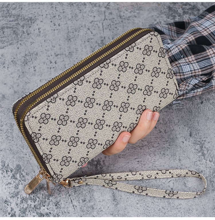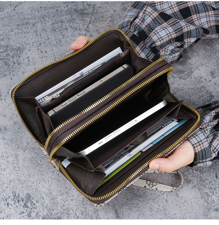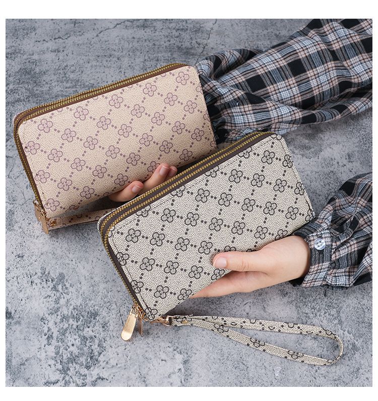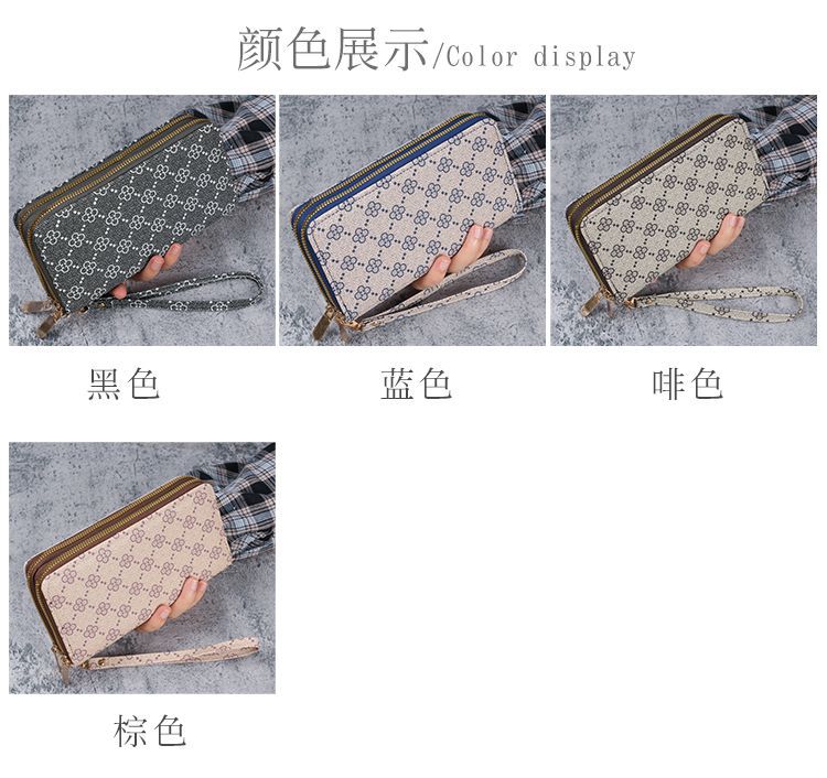 2024复古时尚简约女士钱包大容量卡包多功能手拿包双拉链钱包