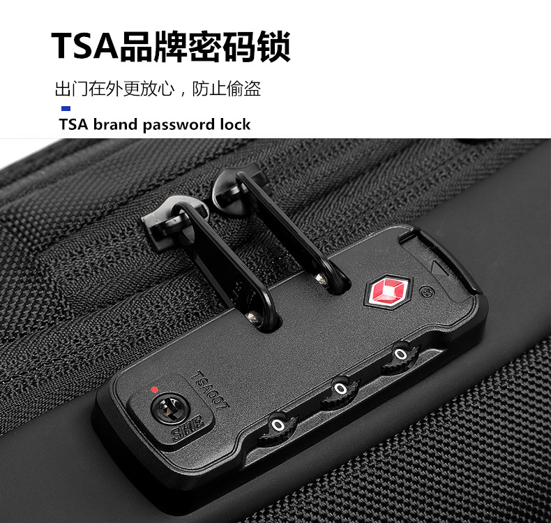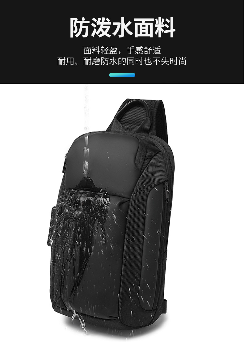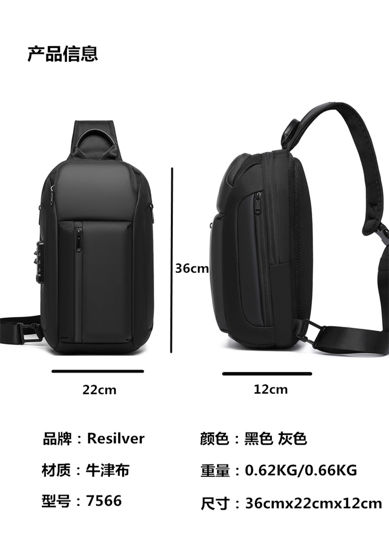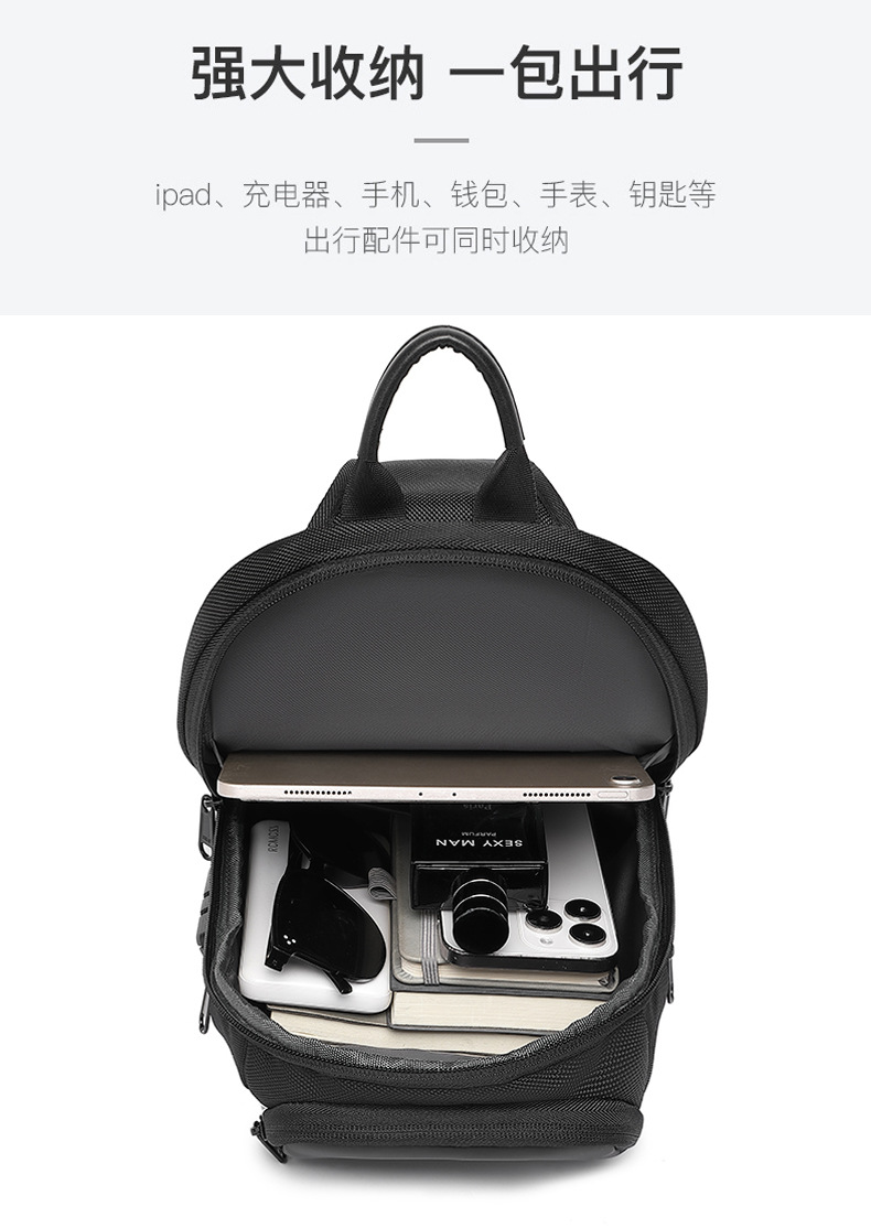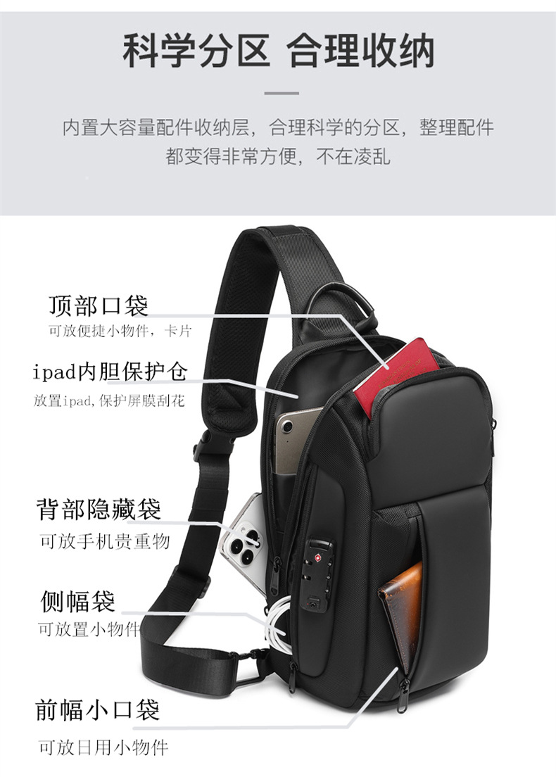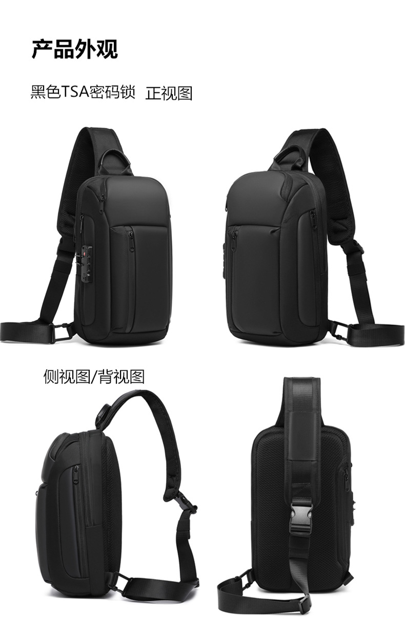 新品胸包斜挎包男士胸包休闲单肩包大容量男包TSA密码锁防盗胸包