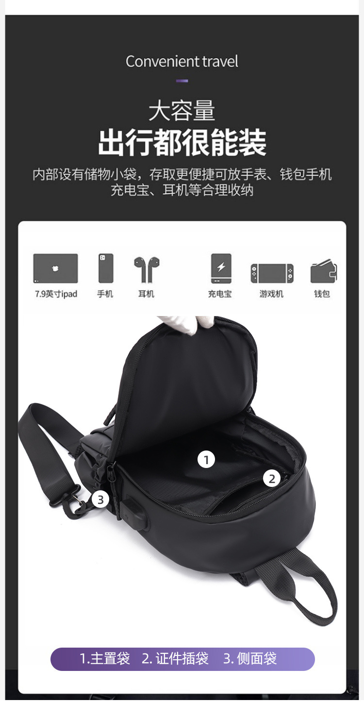 流行胸包男士2025新款时尚纯色大容量旅行休闲洋气耐磨防水斜挎包