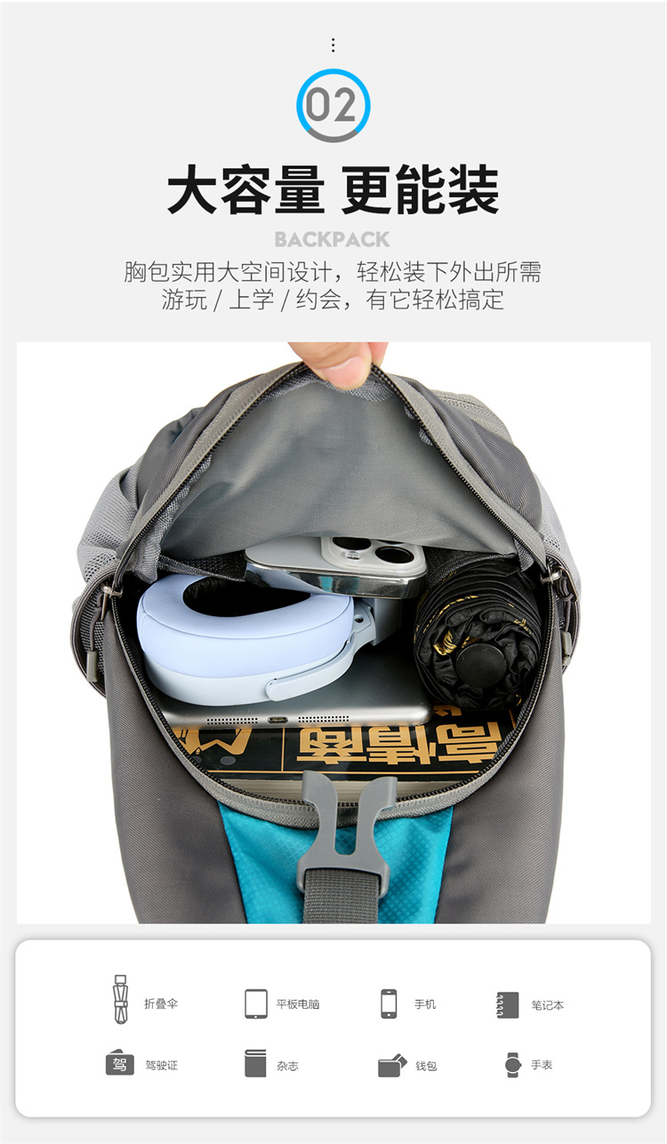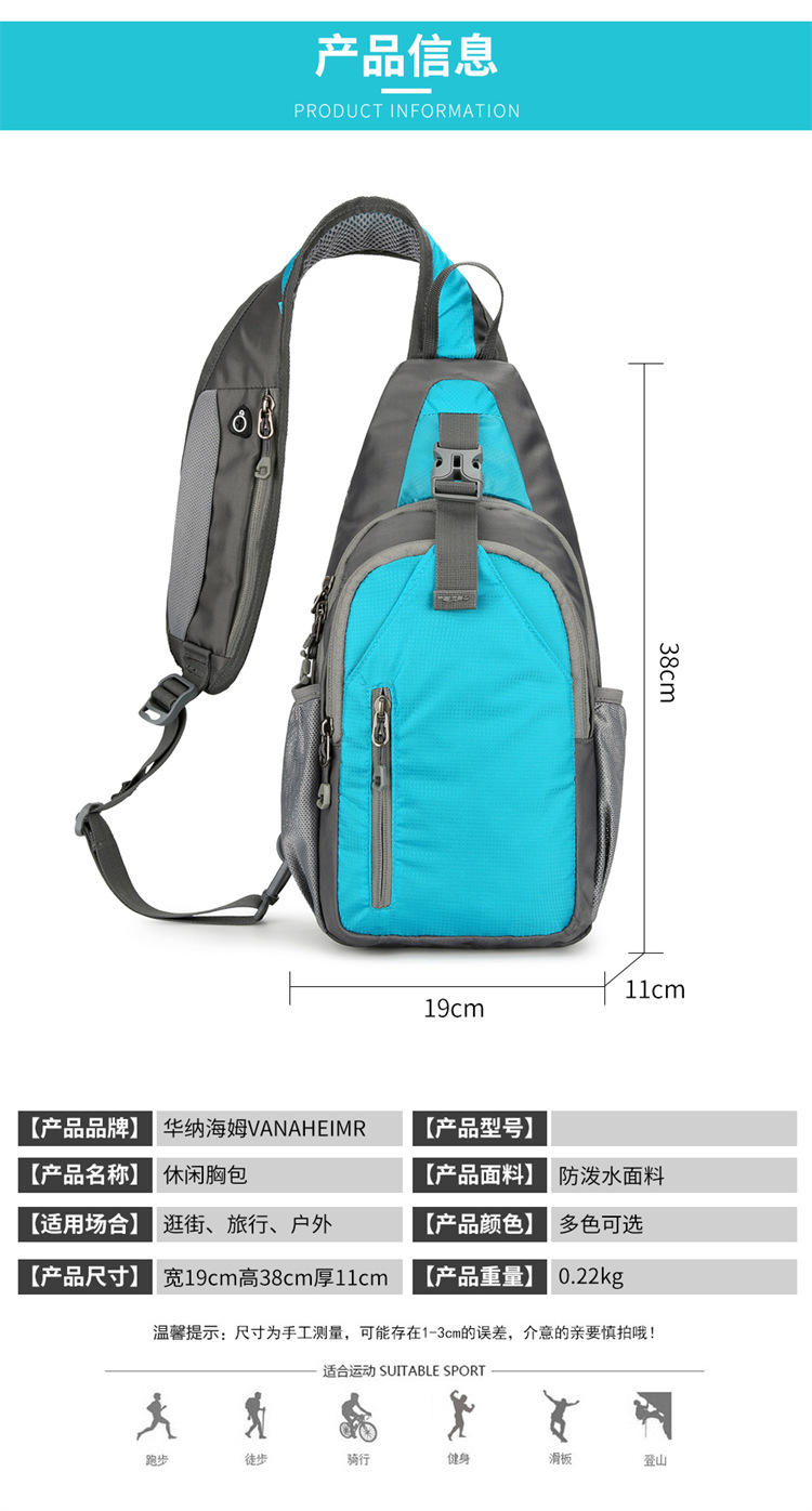 新款多功能运动休闲胸包男士单肩包斜跨包实用大容量运动户外小包