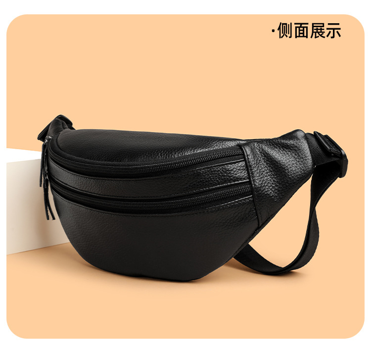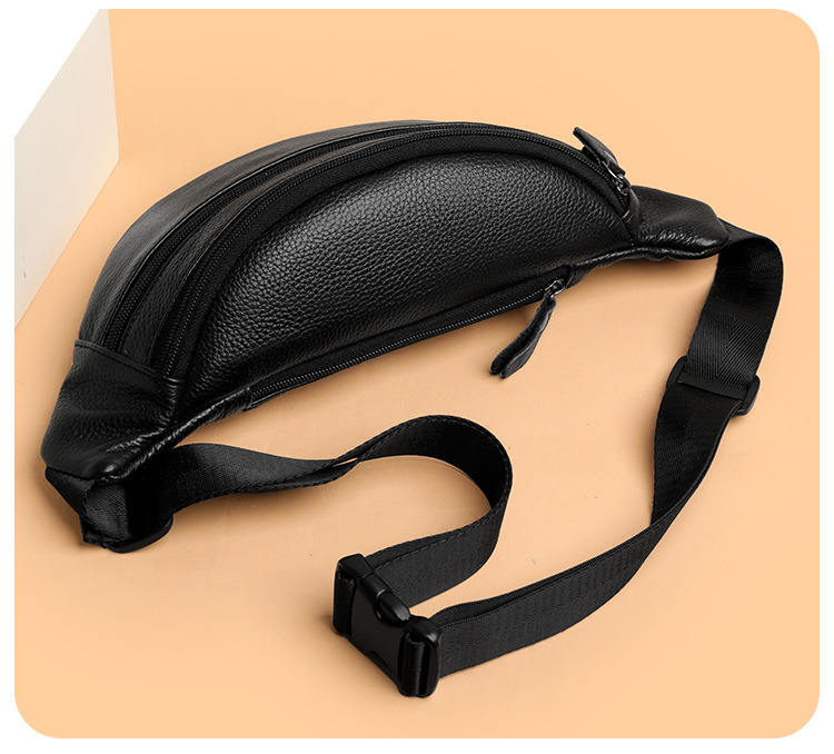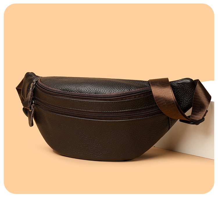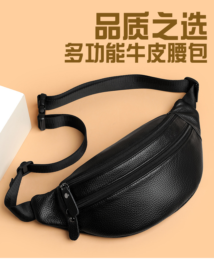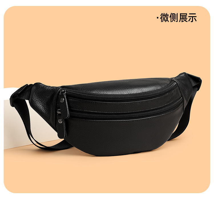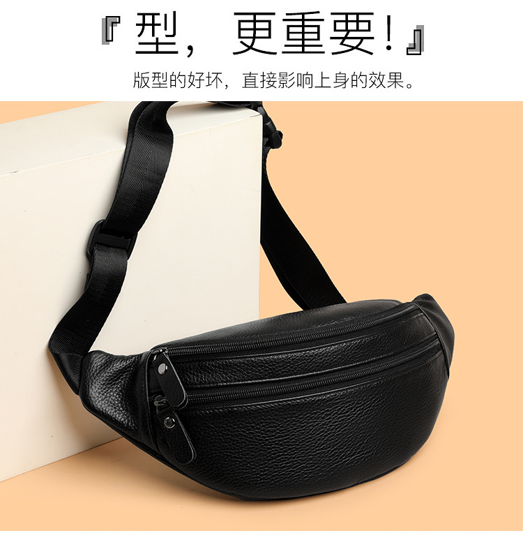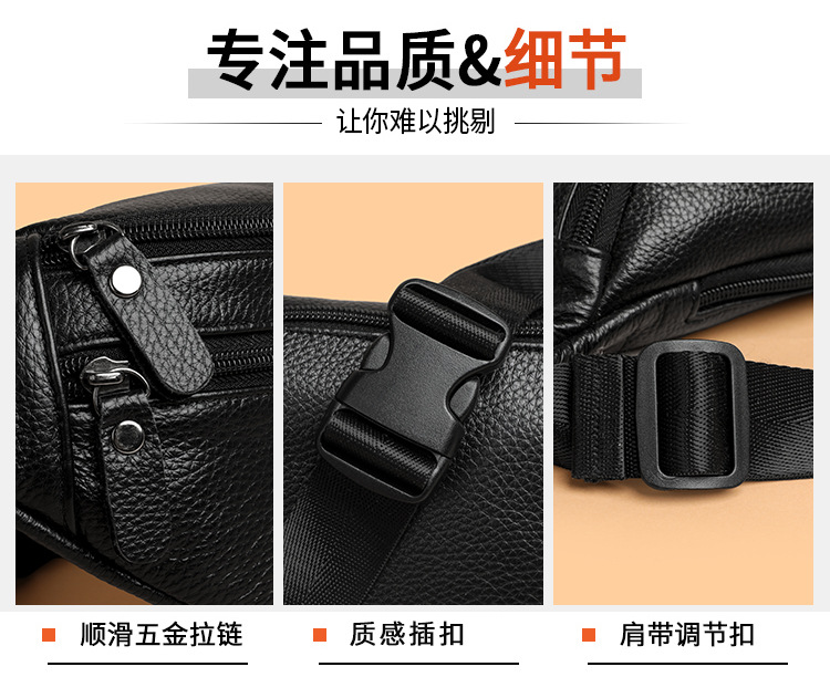 跨境男士胸包真皮大容量腰包男休闲百搭头层软牛皮男款胸前斜挎包