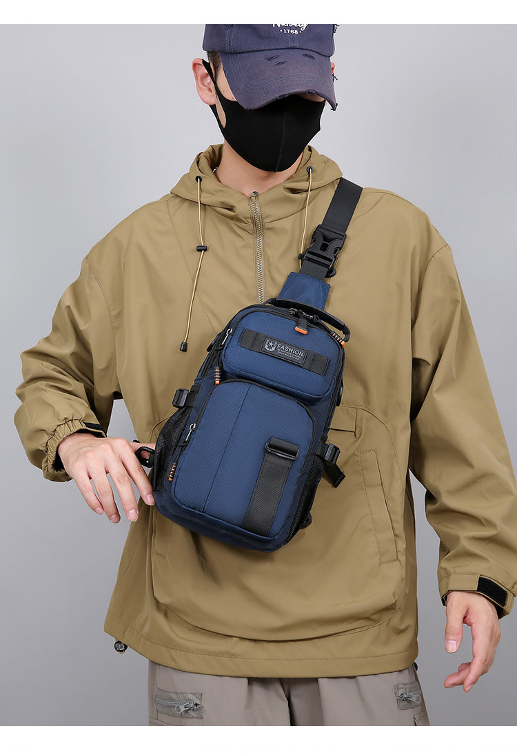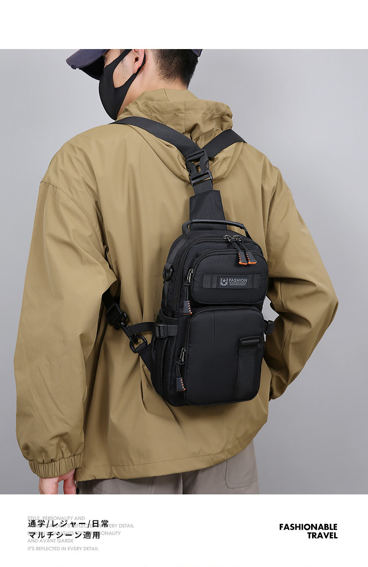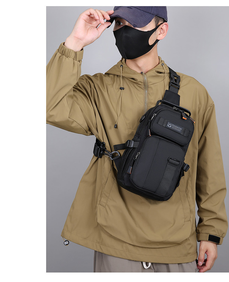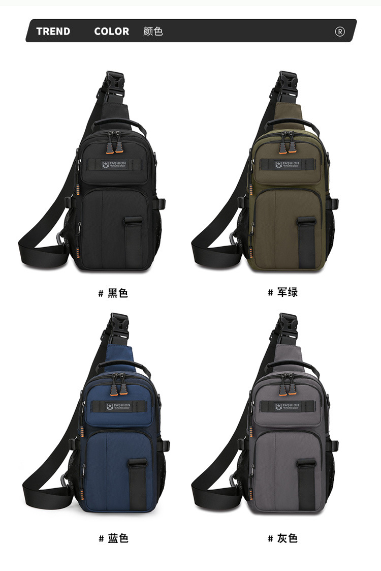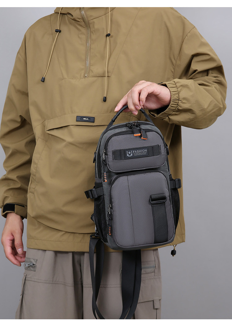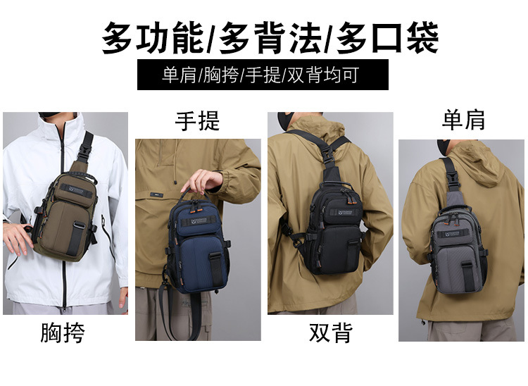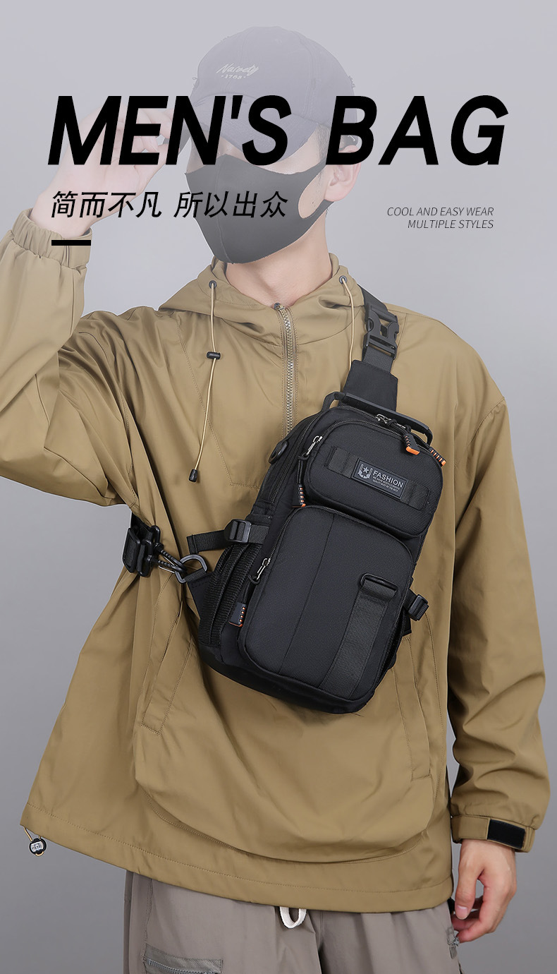 新款男士户外胸包简约百搭单肩斜挎包多功能潮牌大容量单肩包批发