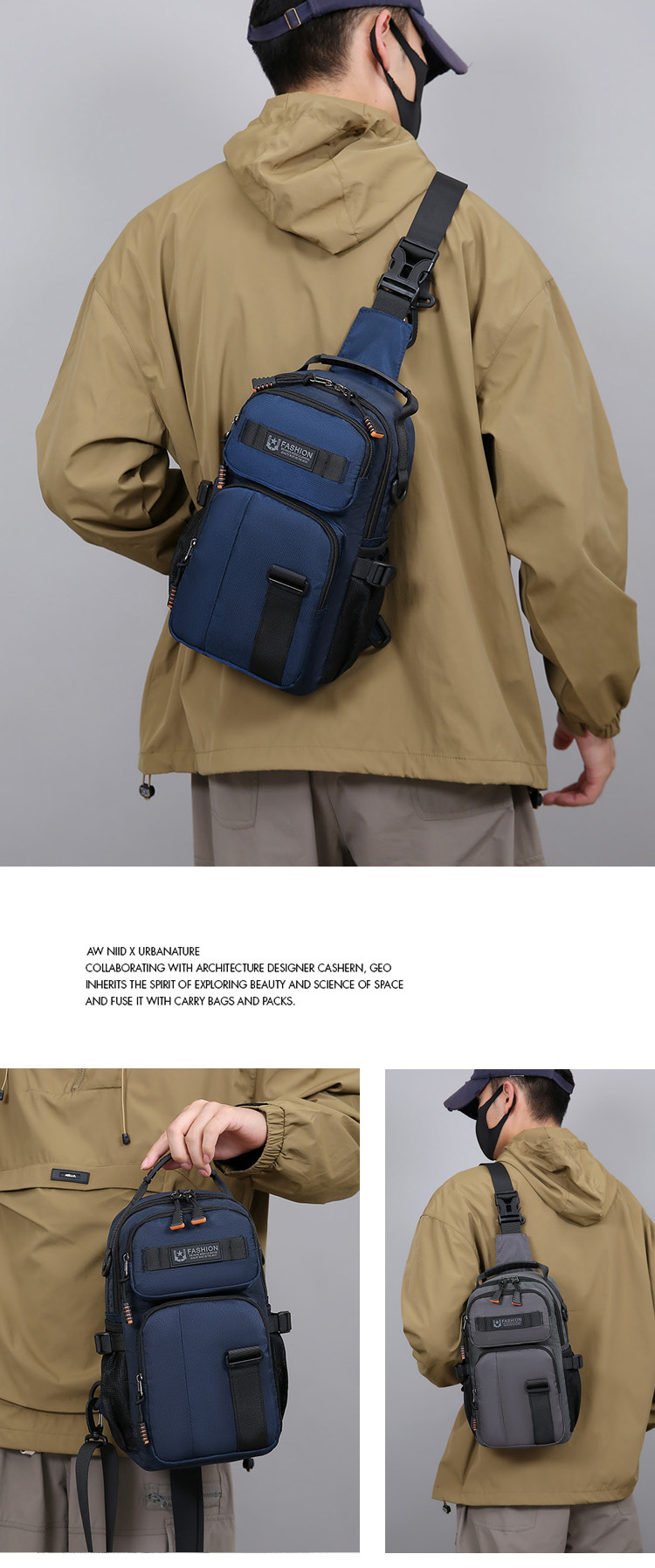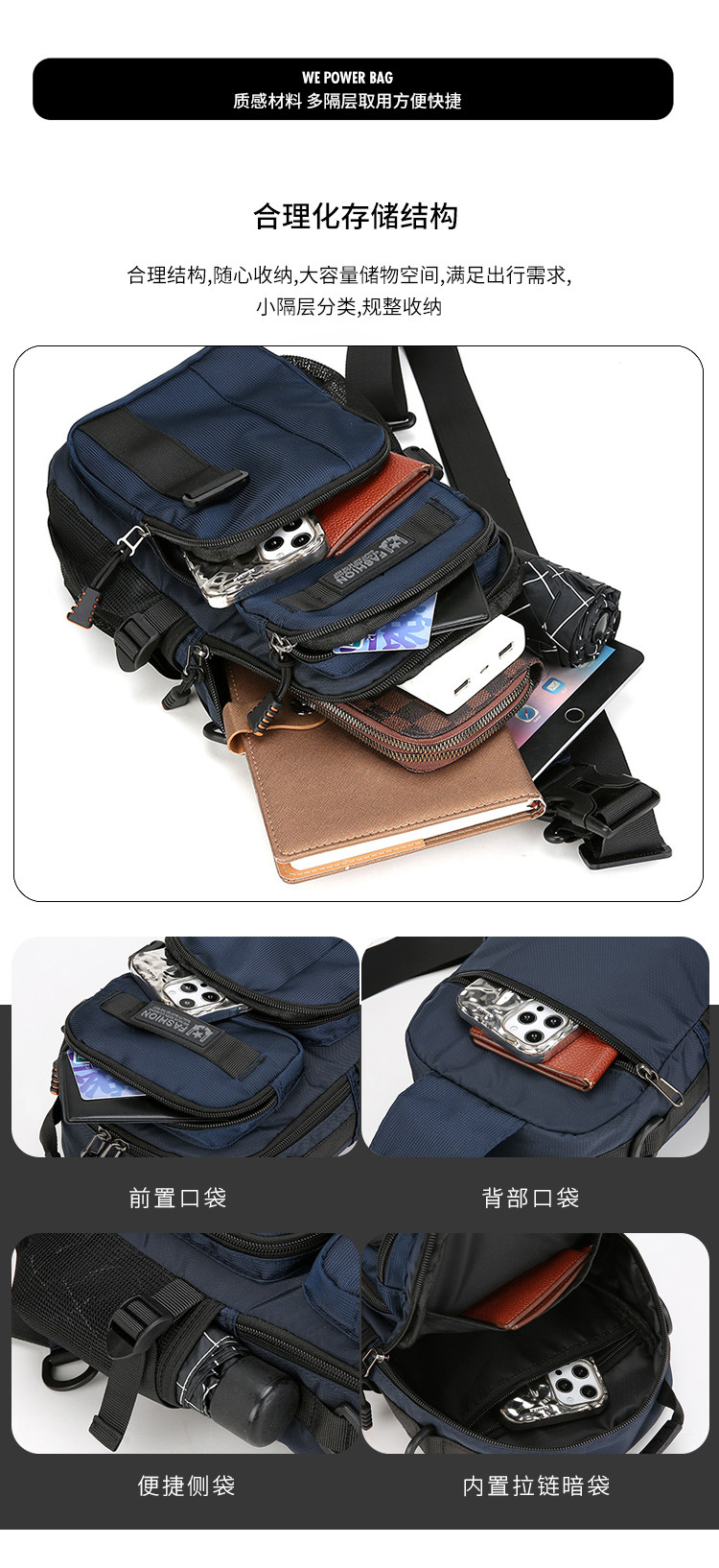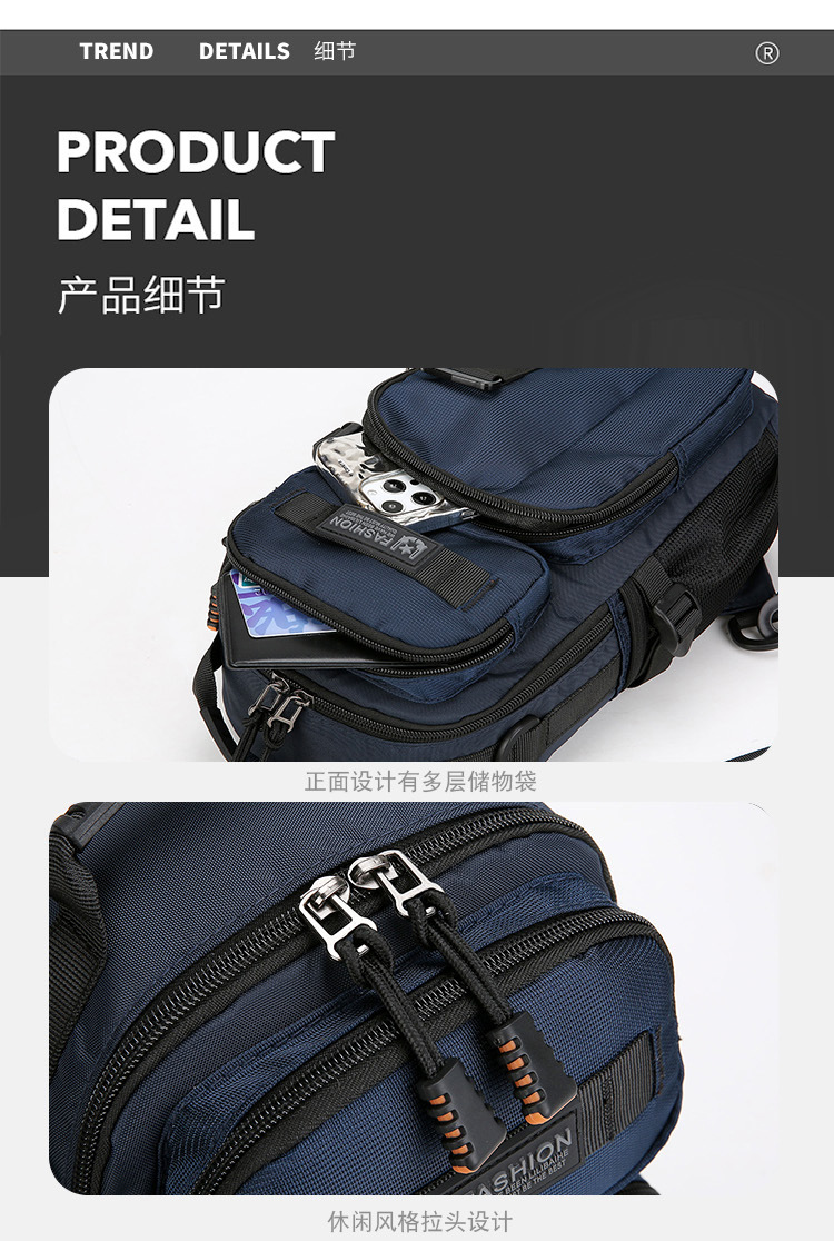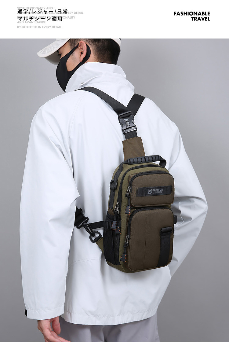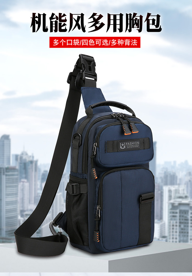 新款男士户外胸包简约百搭单肩斜挎包多功能潮牌大容量单肩包批发