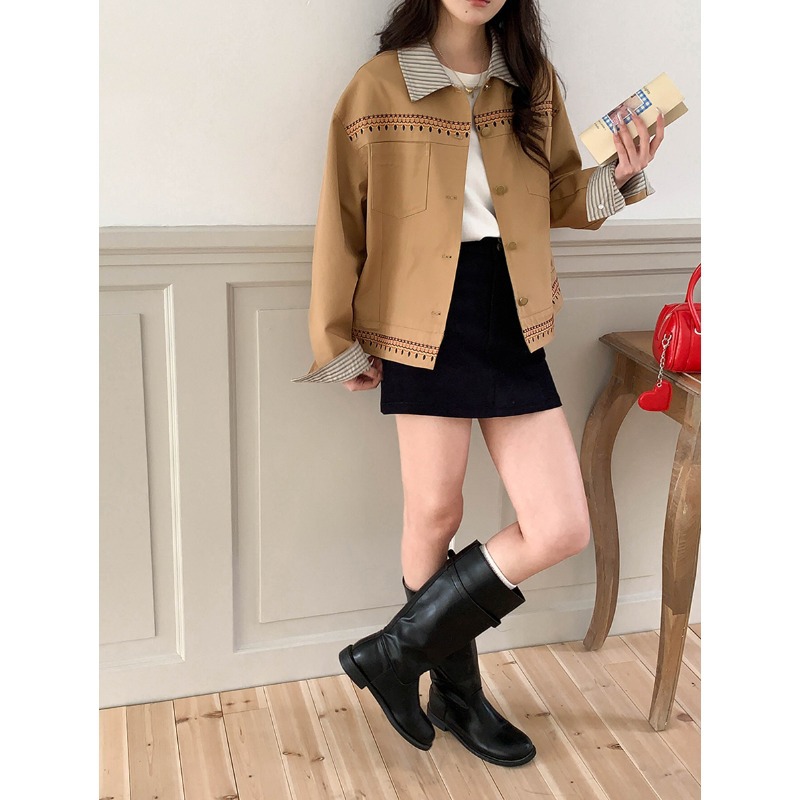 3th Morning 早秋新款 民族风刺绣条纹翻领休闲外套短ZY3234