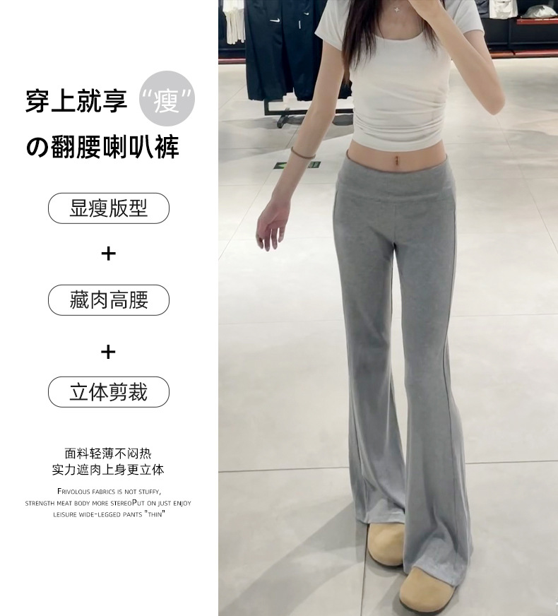 美式翻腰微喇裤女秋季新款高腰辣妹显瘦喇叭裤运动卫裤垂感瑜伽裤