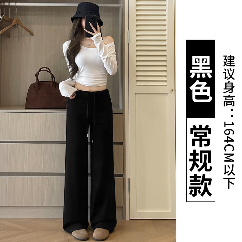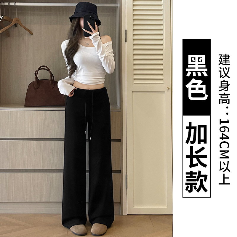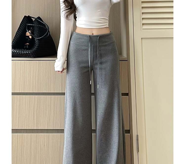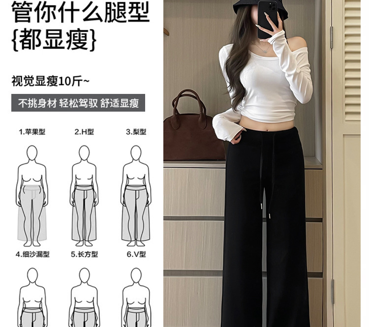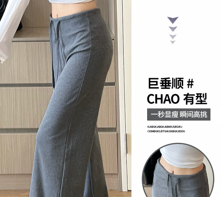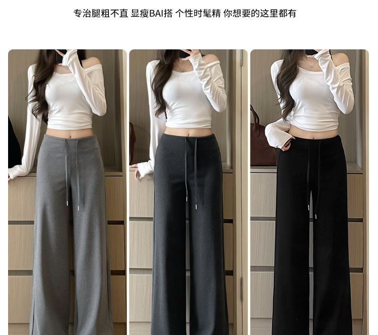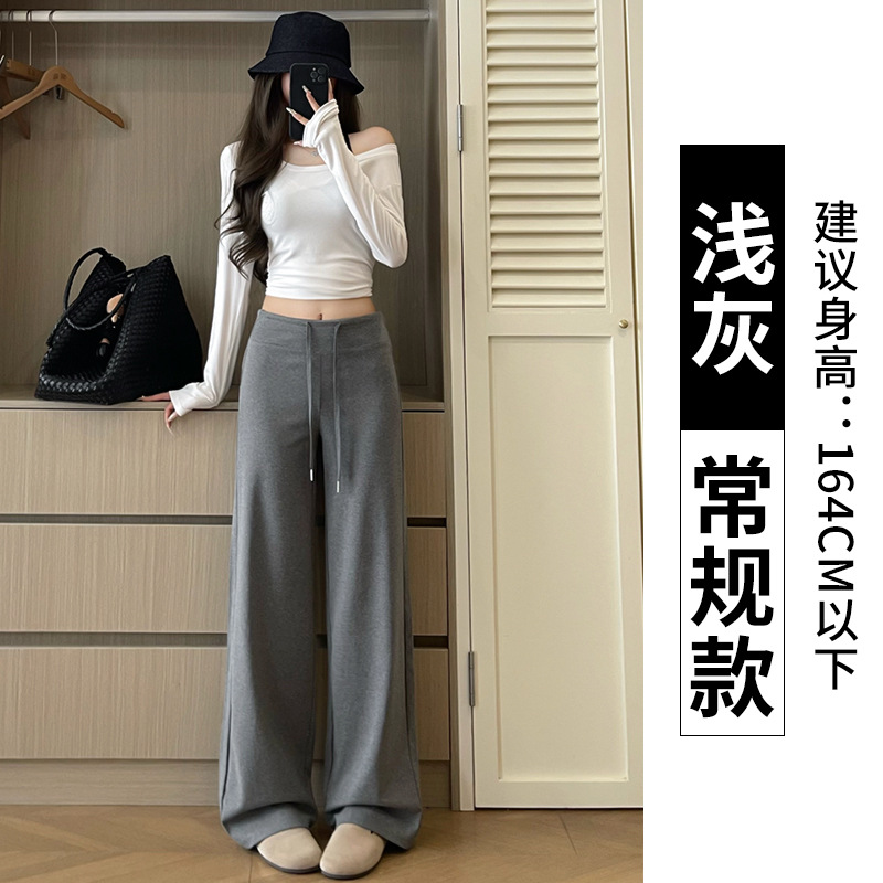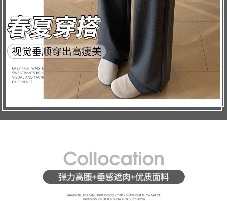灰色运动裤女夏2025年新款高腰阔腿垂感显瘦秋季直筒窄版休闲卫裤