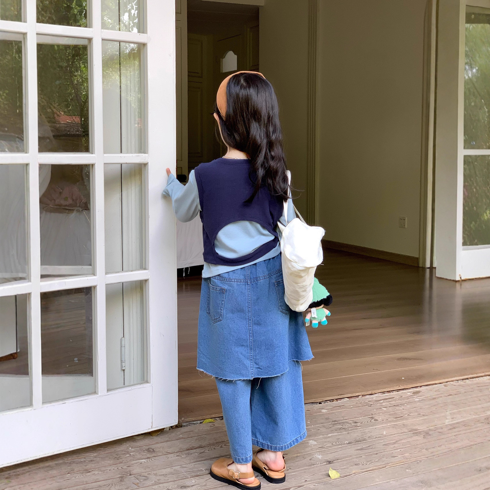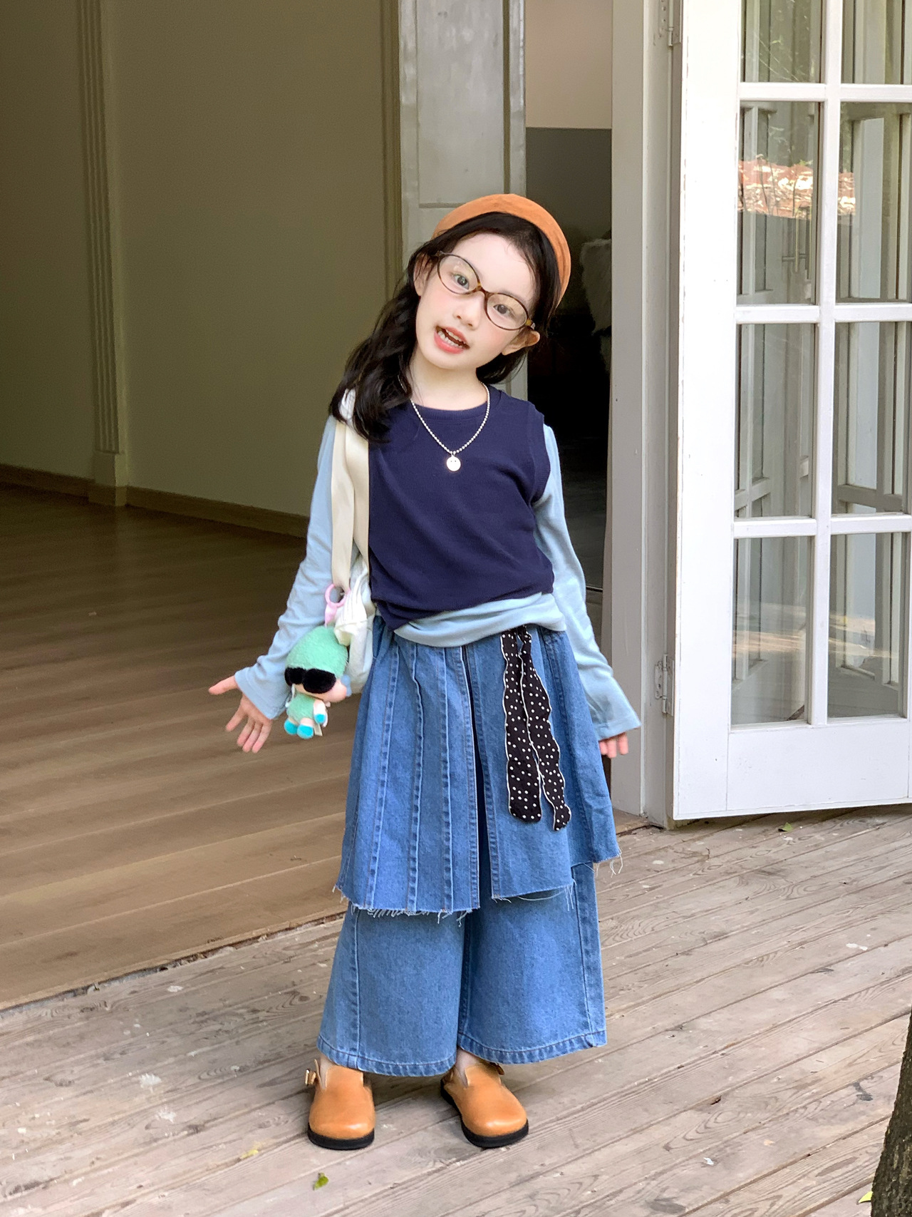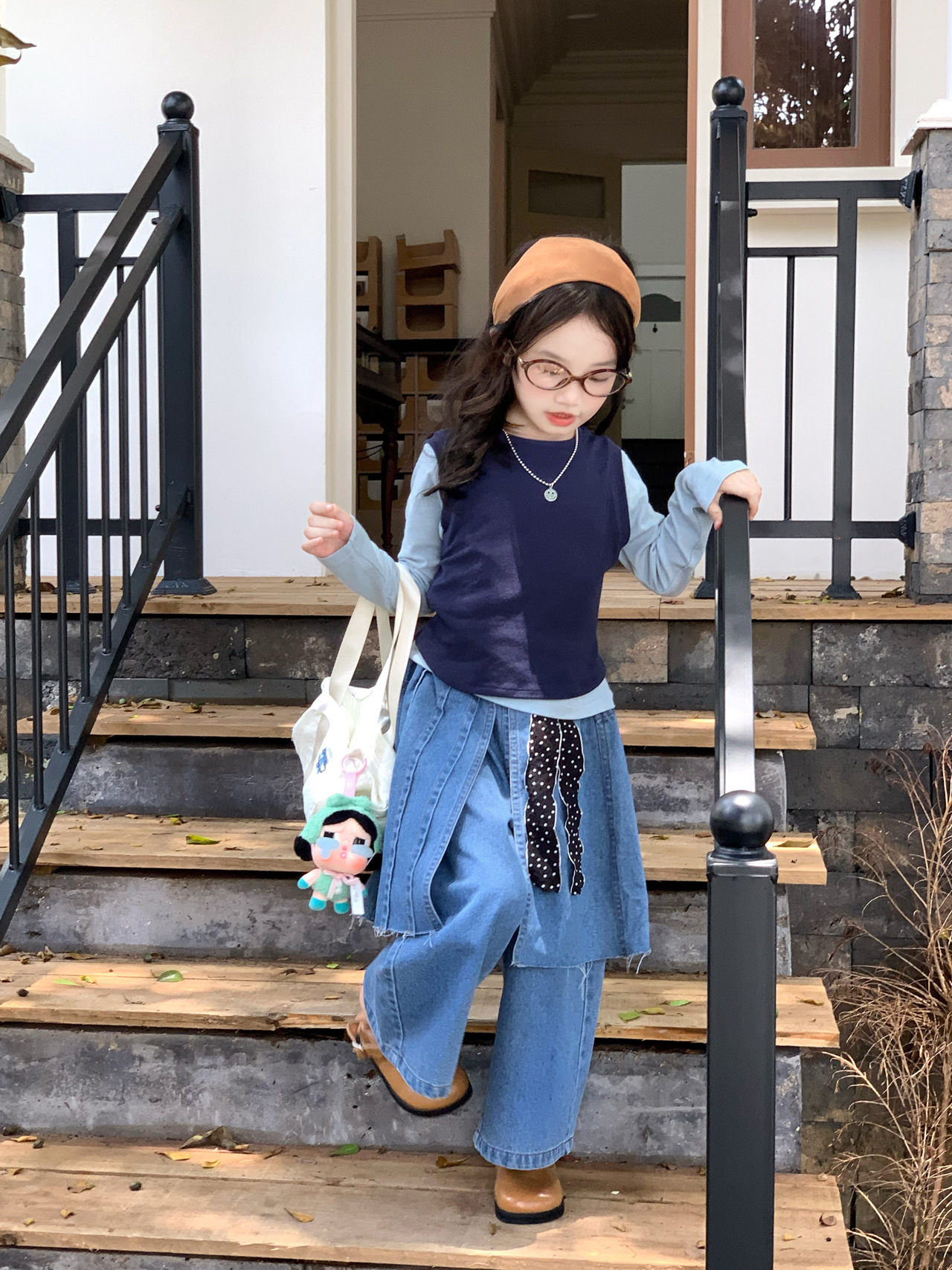 女童洋气屁帘牛仔裤2025秋季新款童装中小童打底衫背心牛仔裙裤