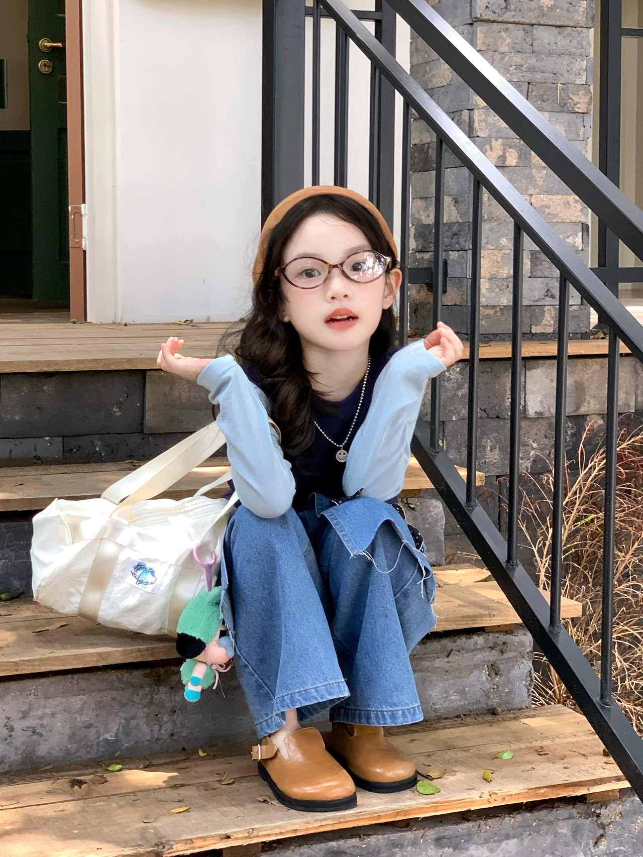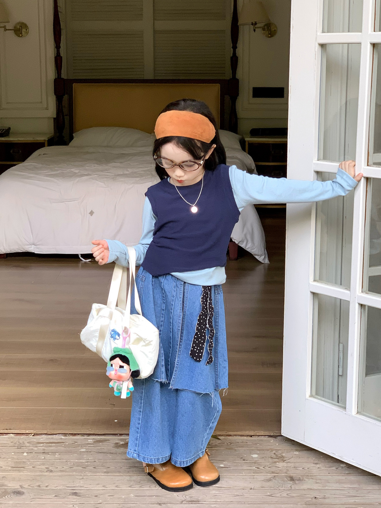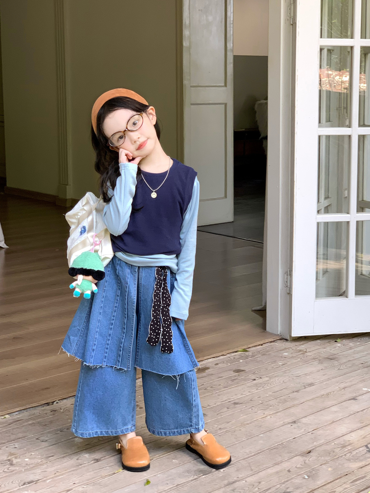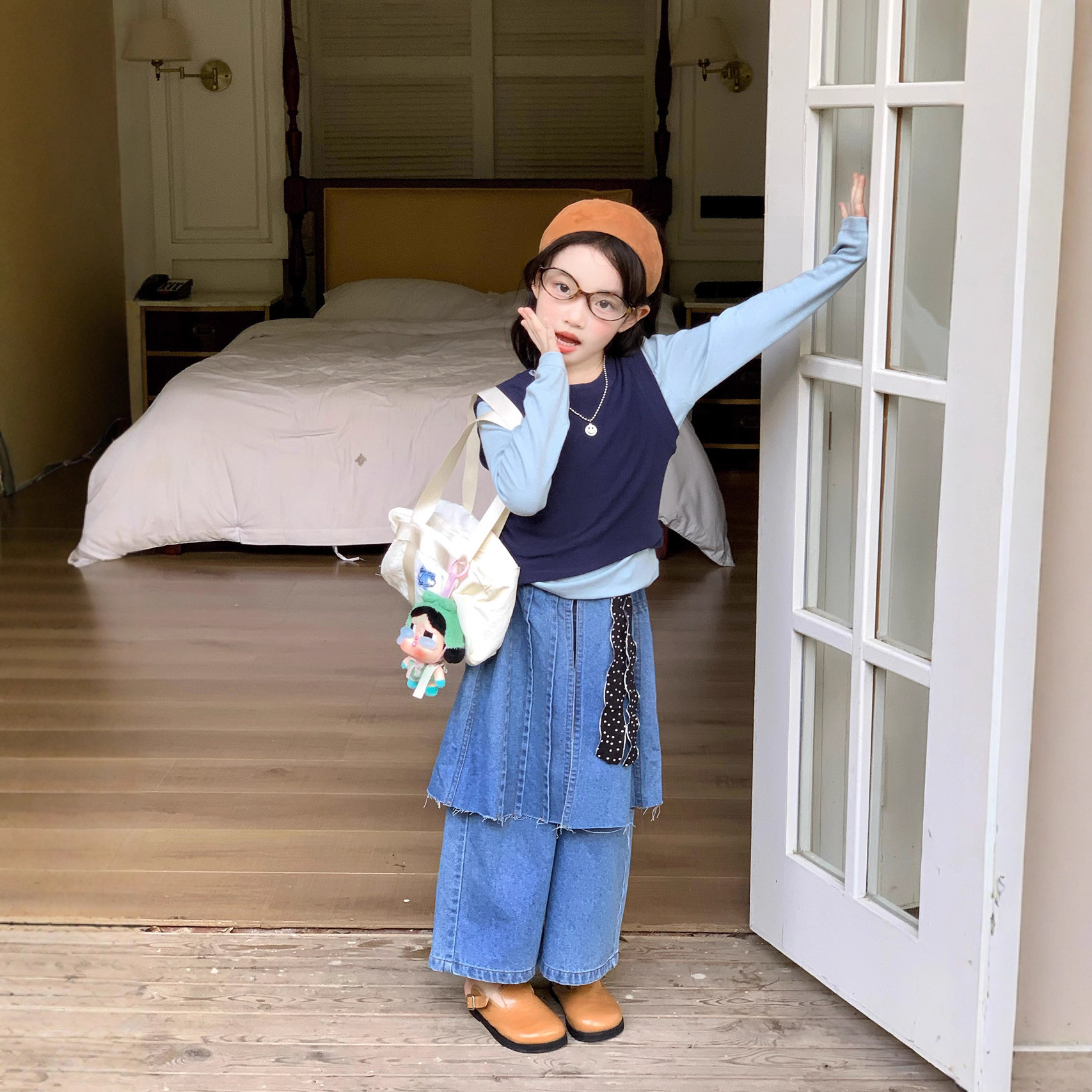 女童洋气屁帘牛仔裤2025秋季新款童装中小童打底衫背心牛仔裙裤