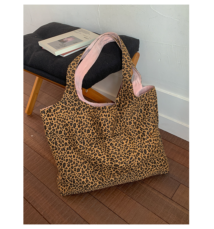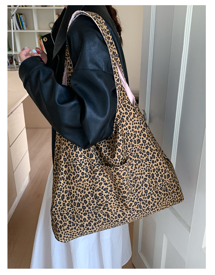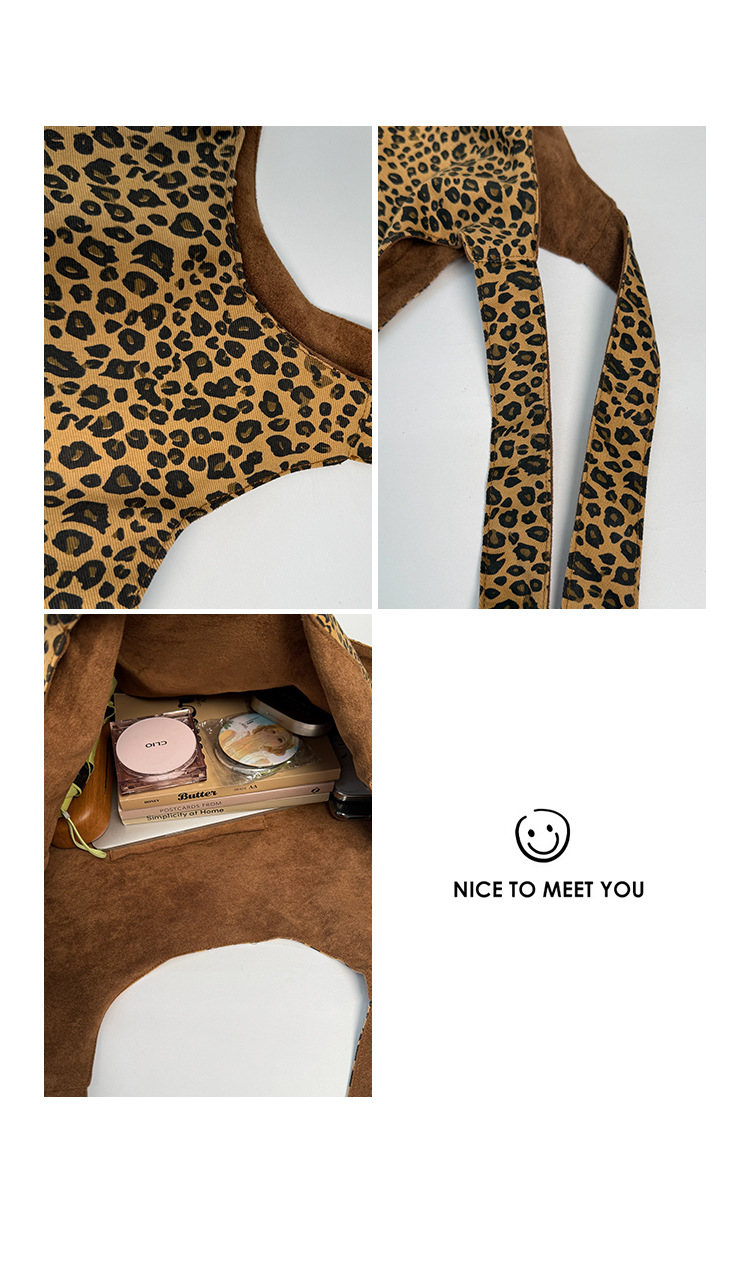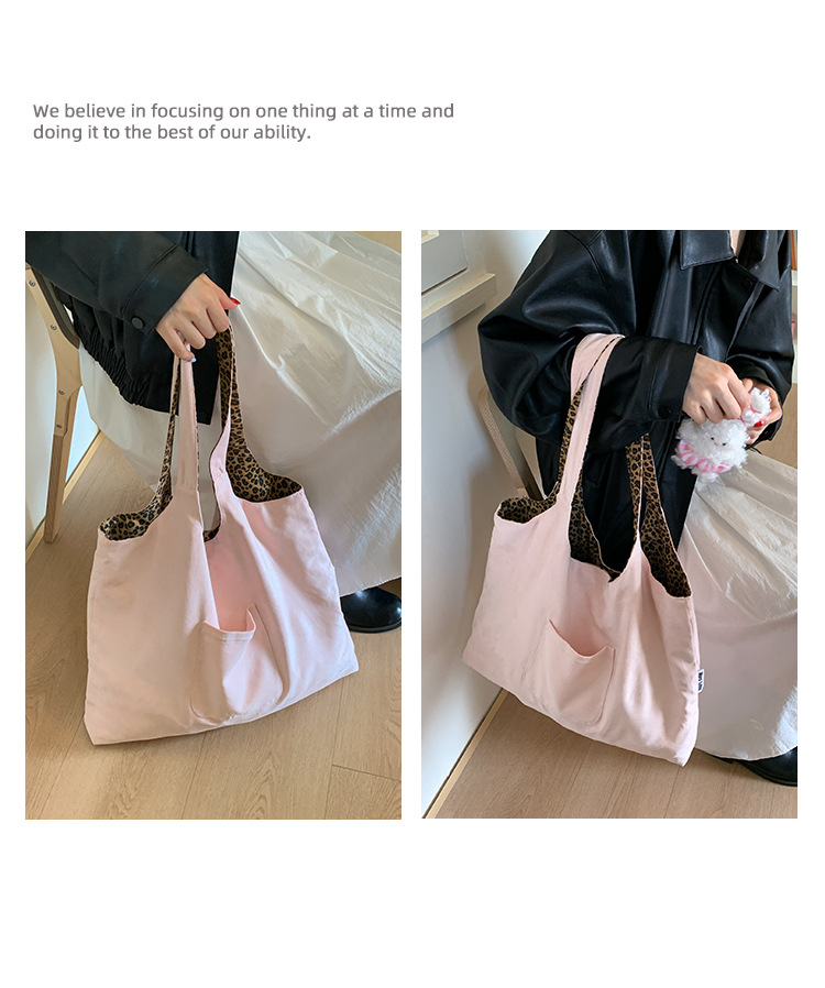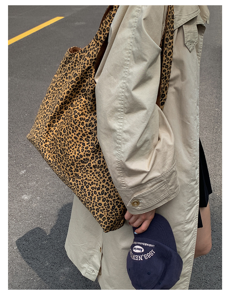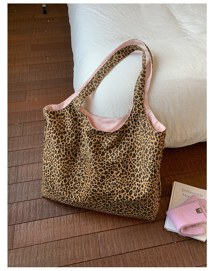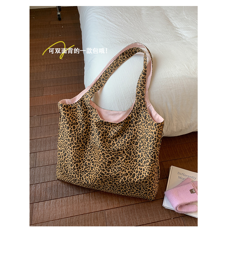 秋新款背心博主单肩包豹纹春夏粉色韩国双面印花2025背包托特包女