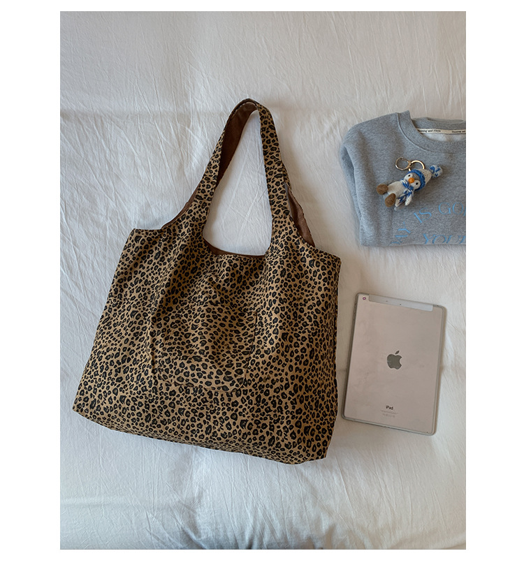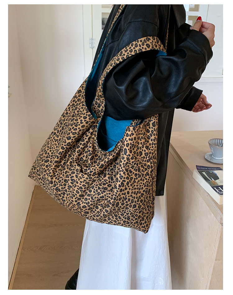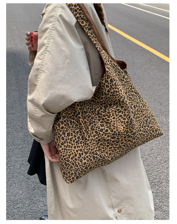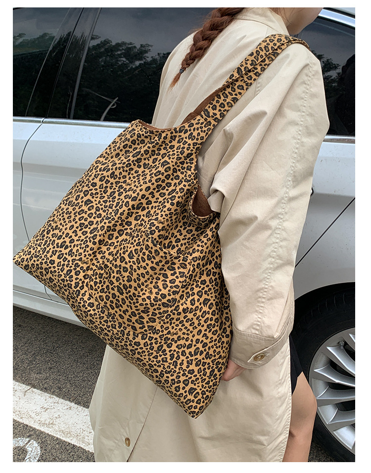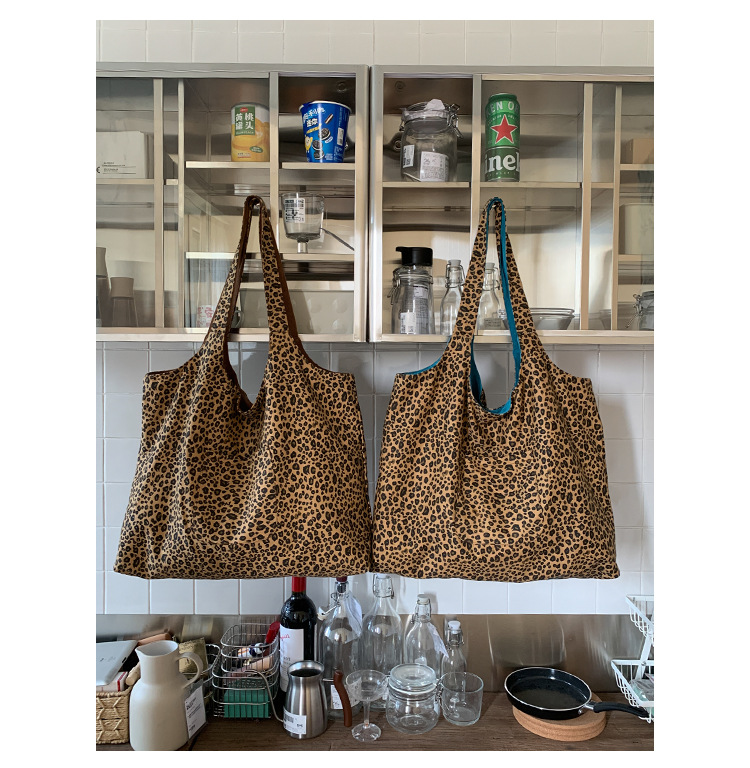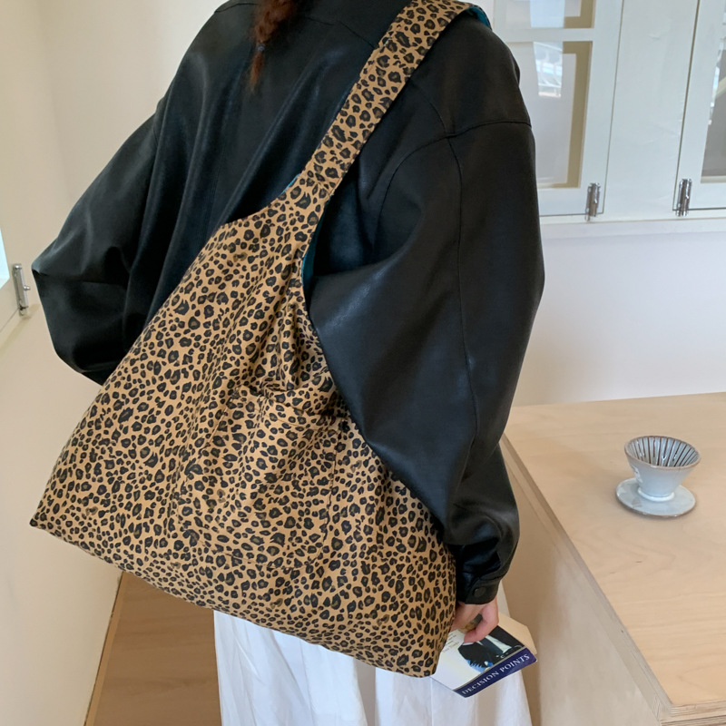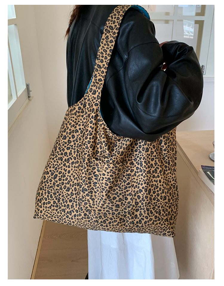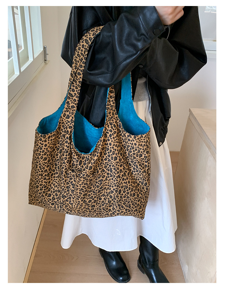秋新款背心博主单肩包豹纹春夏粉色韩国双面印花2025背包托特包女