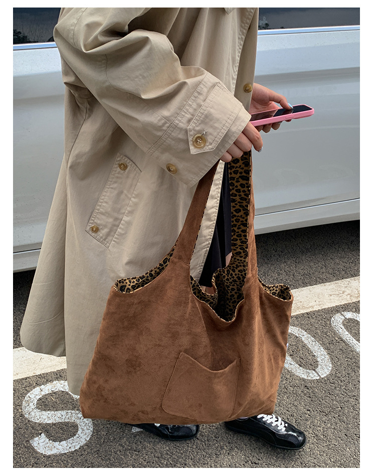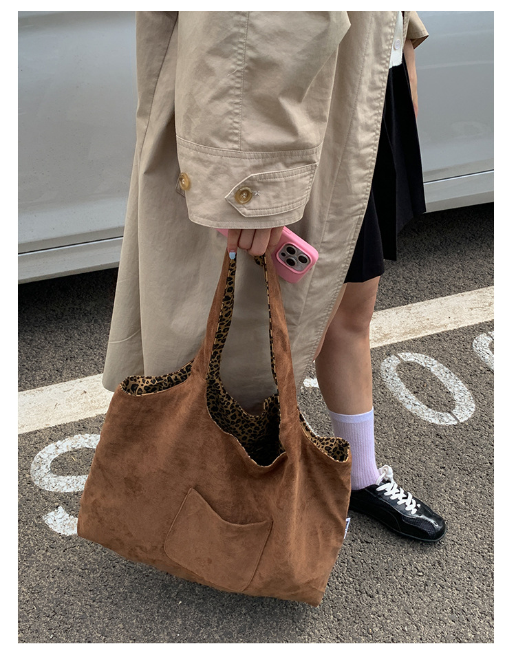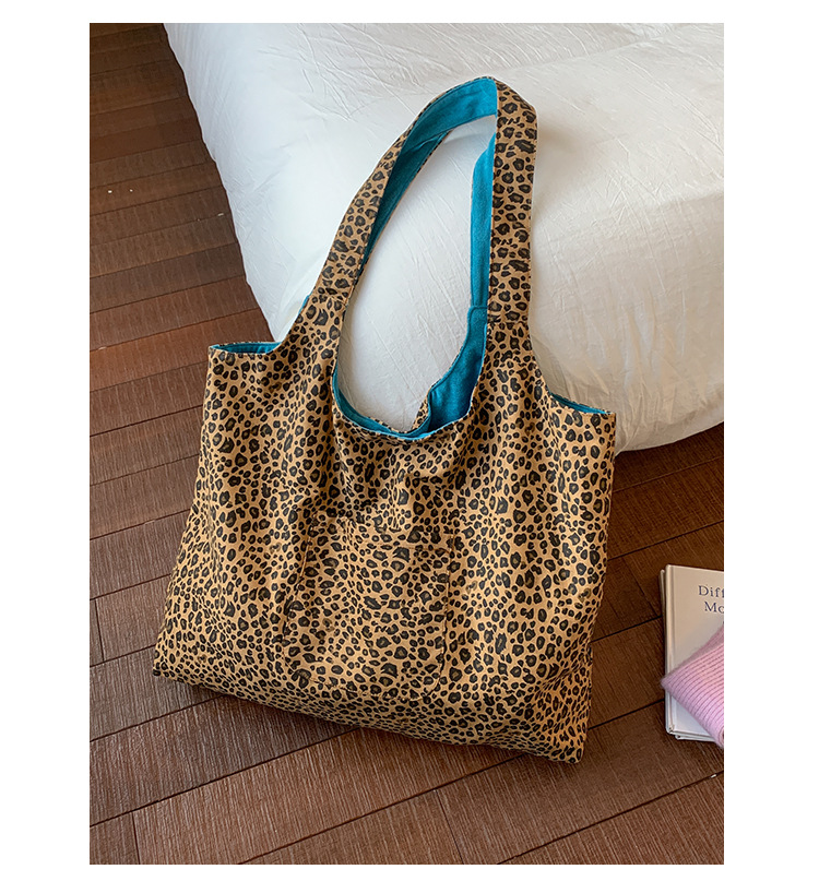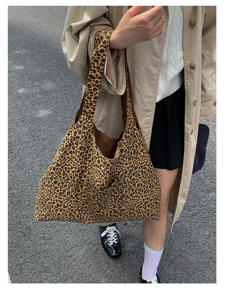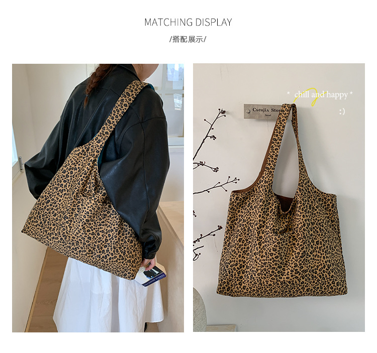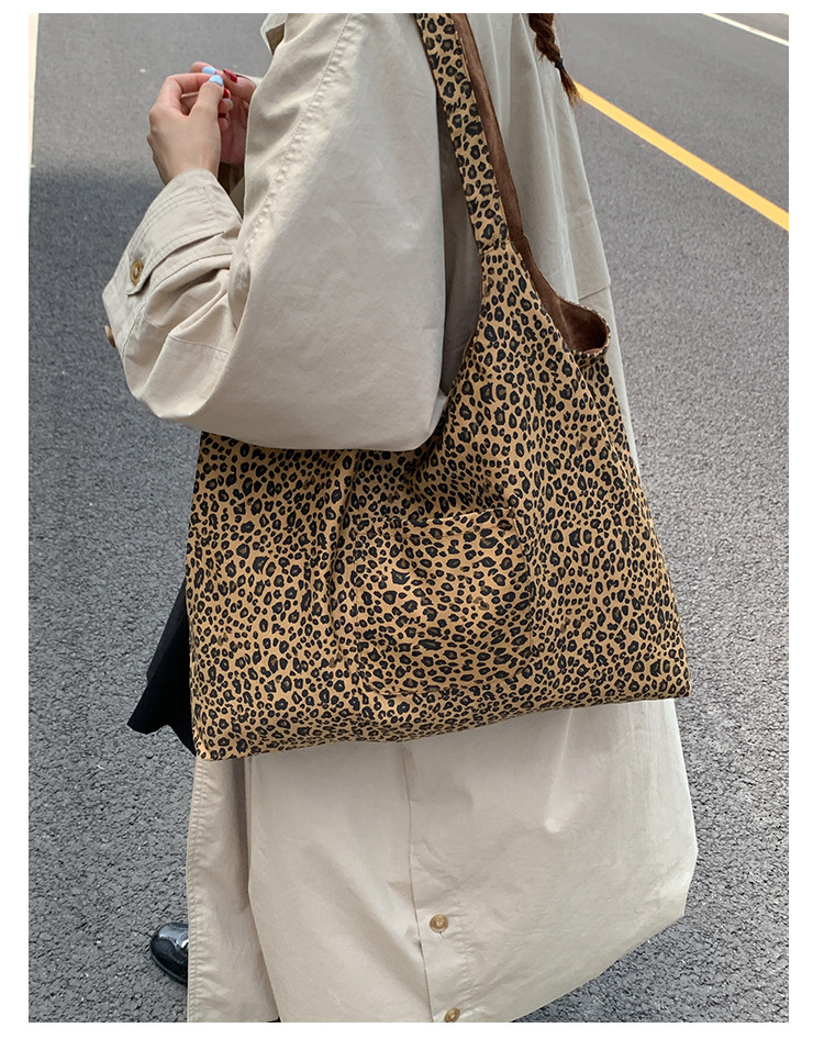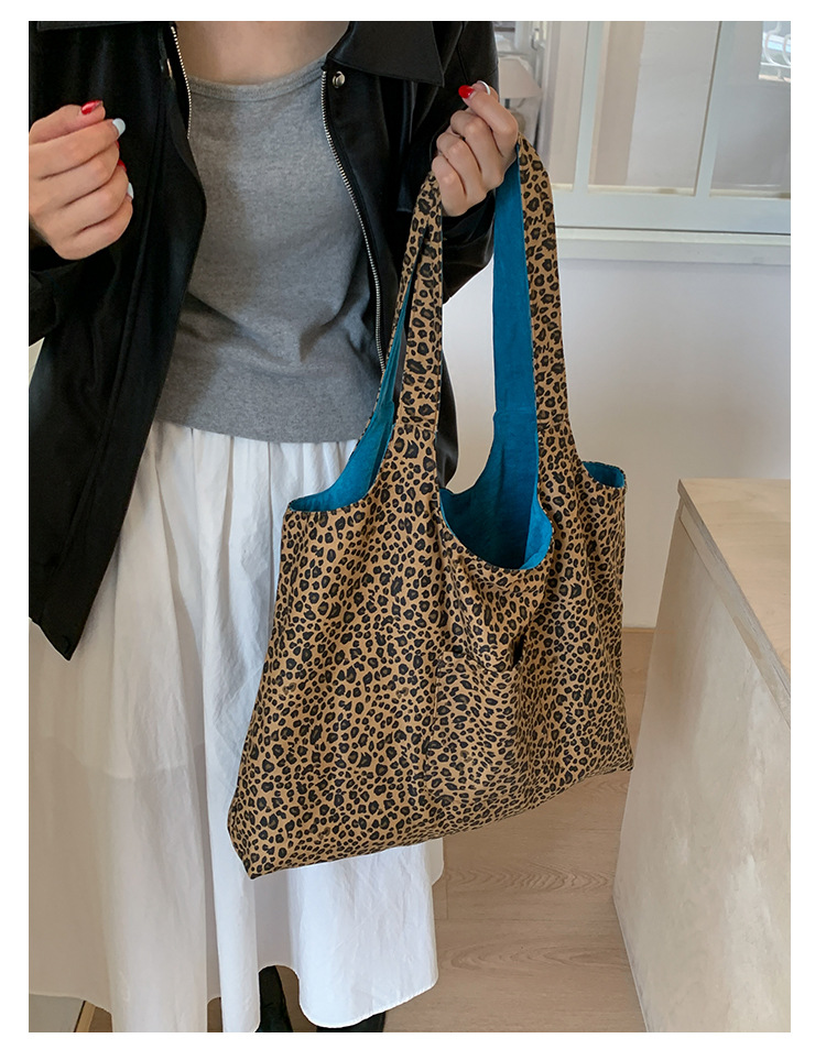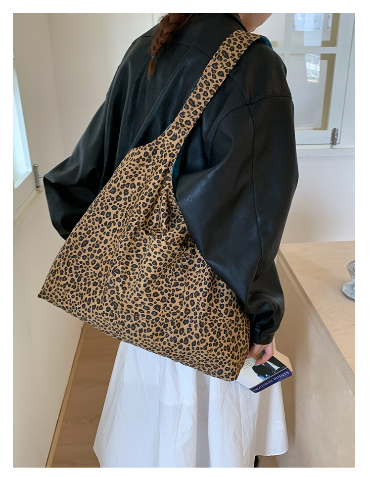 秋新款背心博主单肩包豹纹春夏粉色韩国双面印花2025背包托特包女