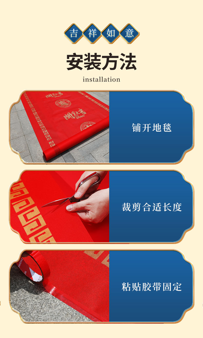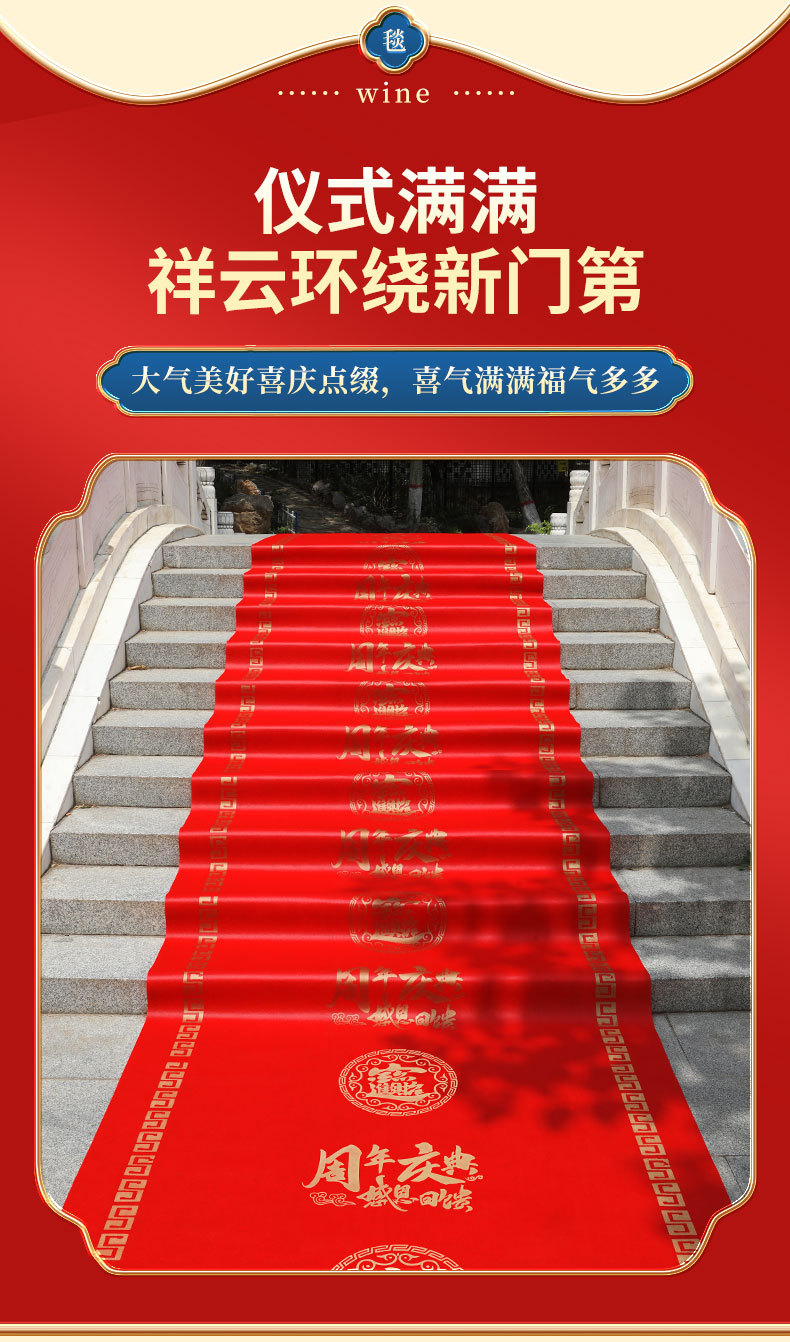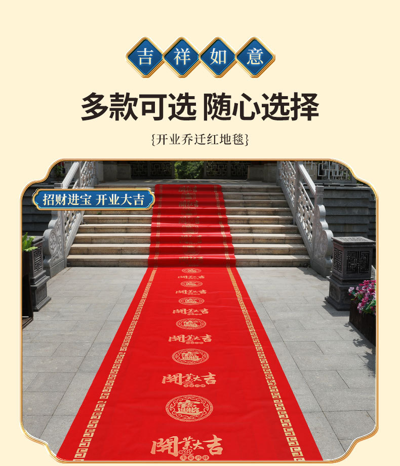 新款周年店庆典繁体字开业大吉乔迁之喜一次性无纺布纯红地毯布置