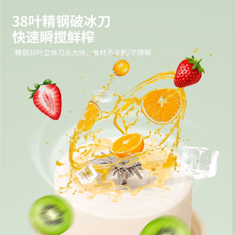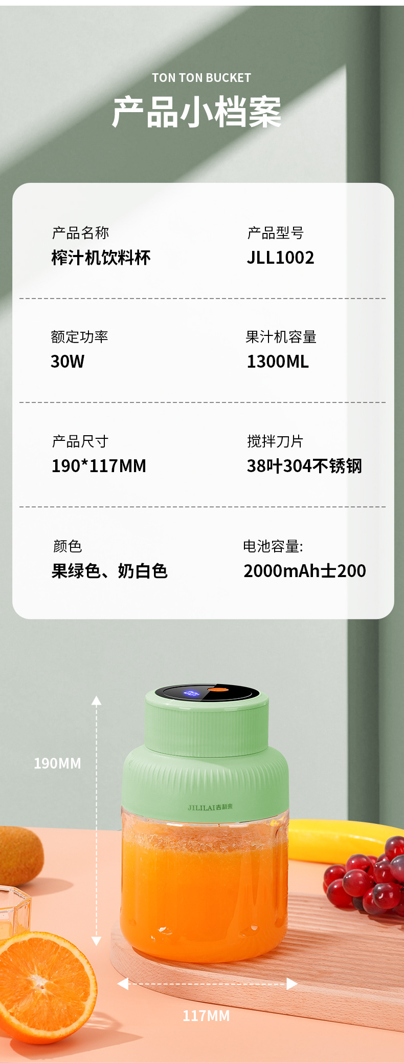 JLL1002电动榨汁机Type-c充电辅食料理机无线榨汁 一杯双盖
