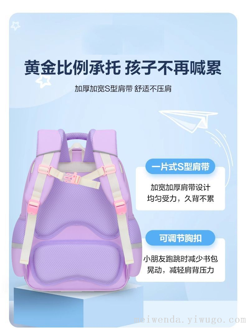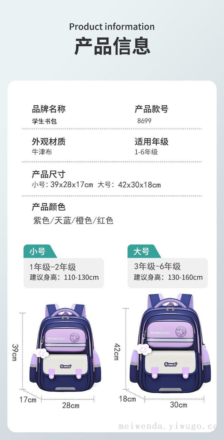 新款时尚潮流书包1-6年级轻便护脊大容量品质学生背包