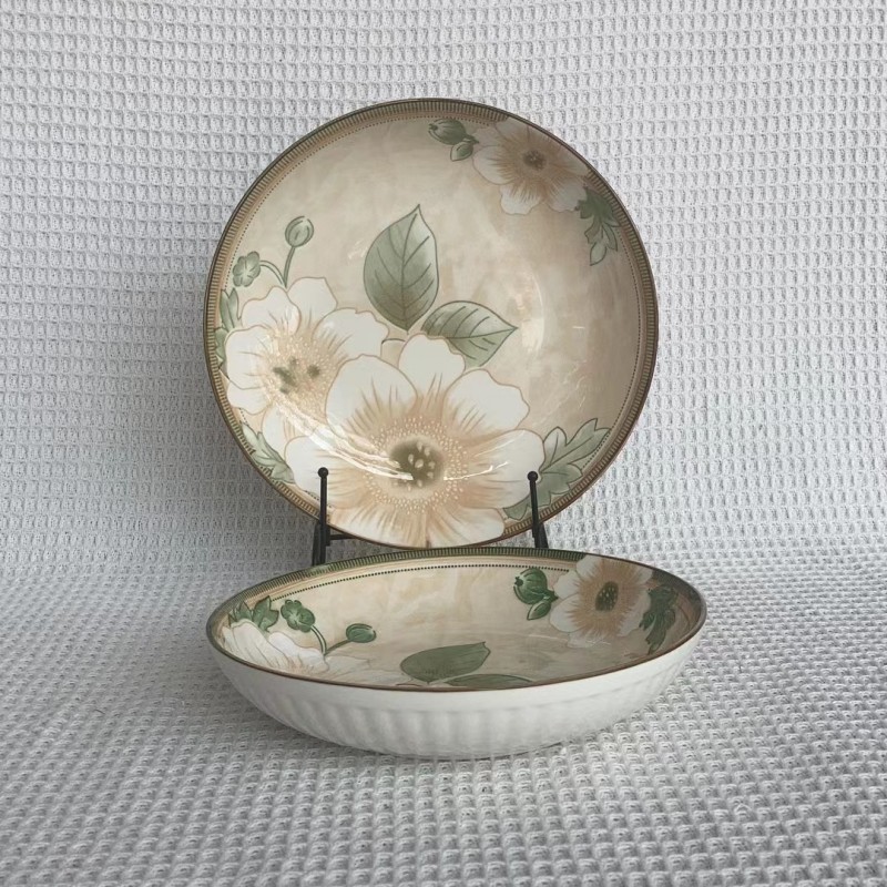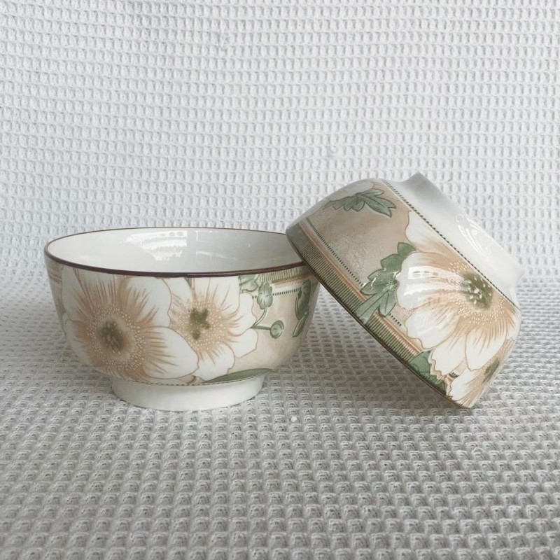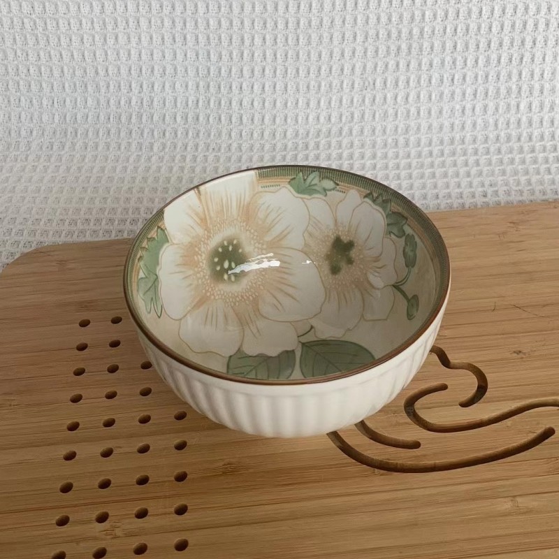 日式山茶花山田碗盘餐具网红家用复古风4.5寸米饭碗沙拉碗泡面碗