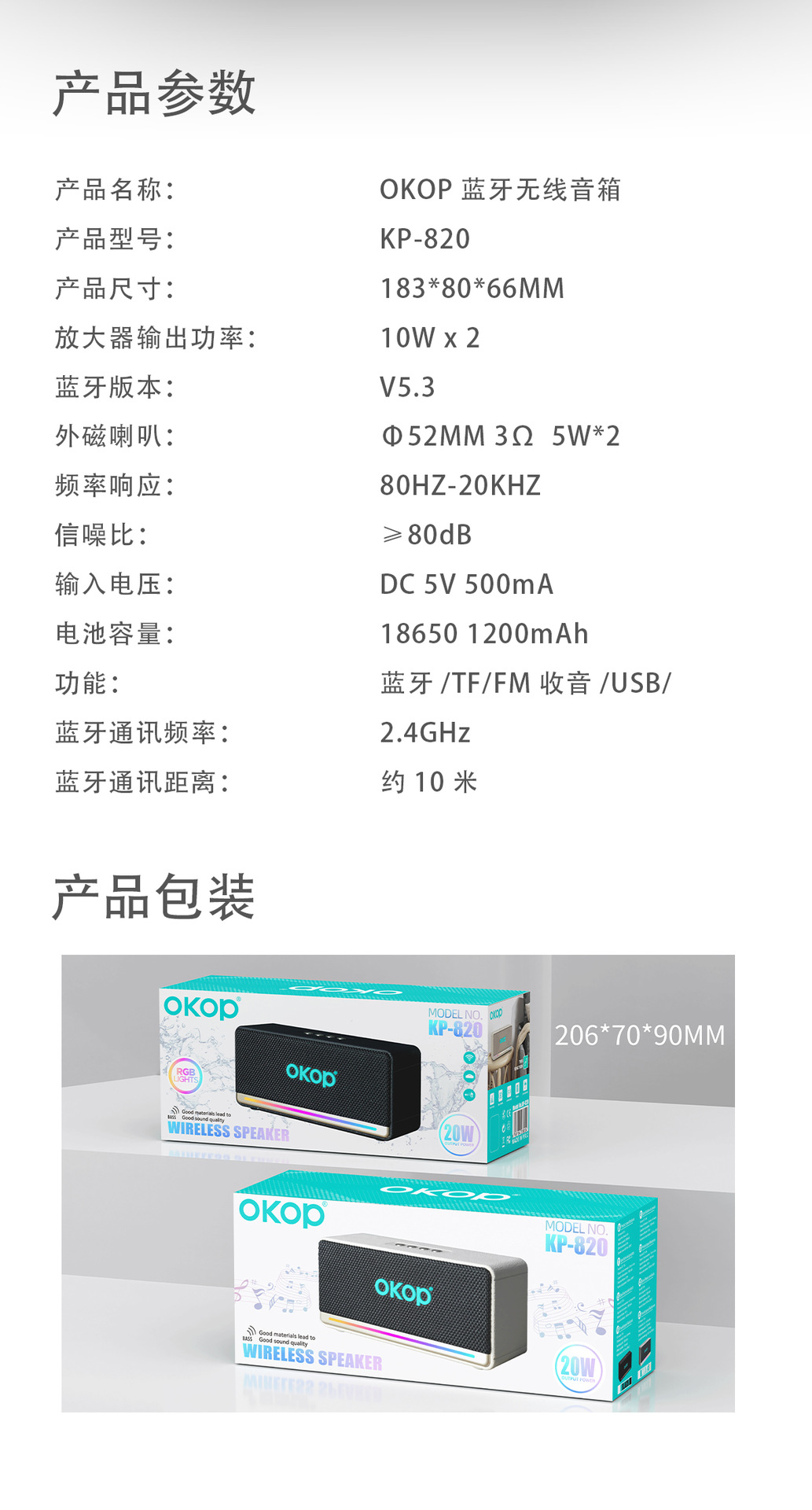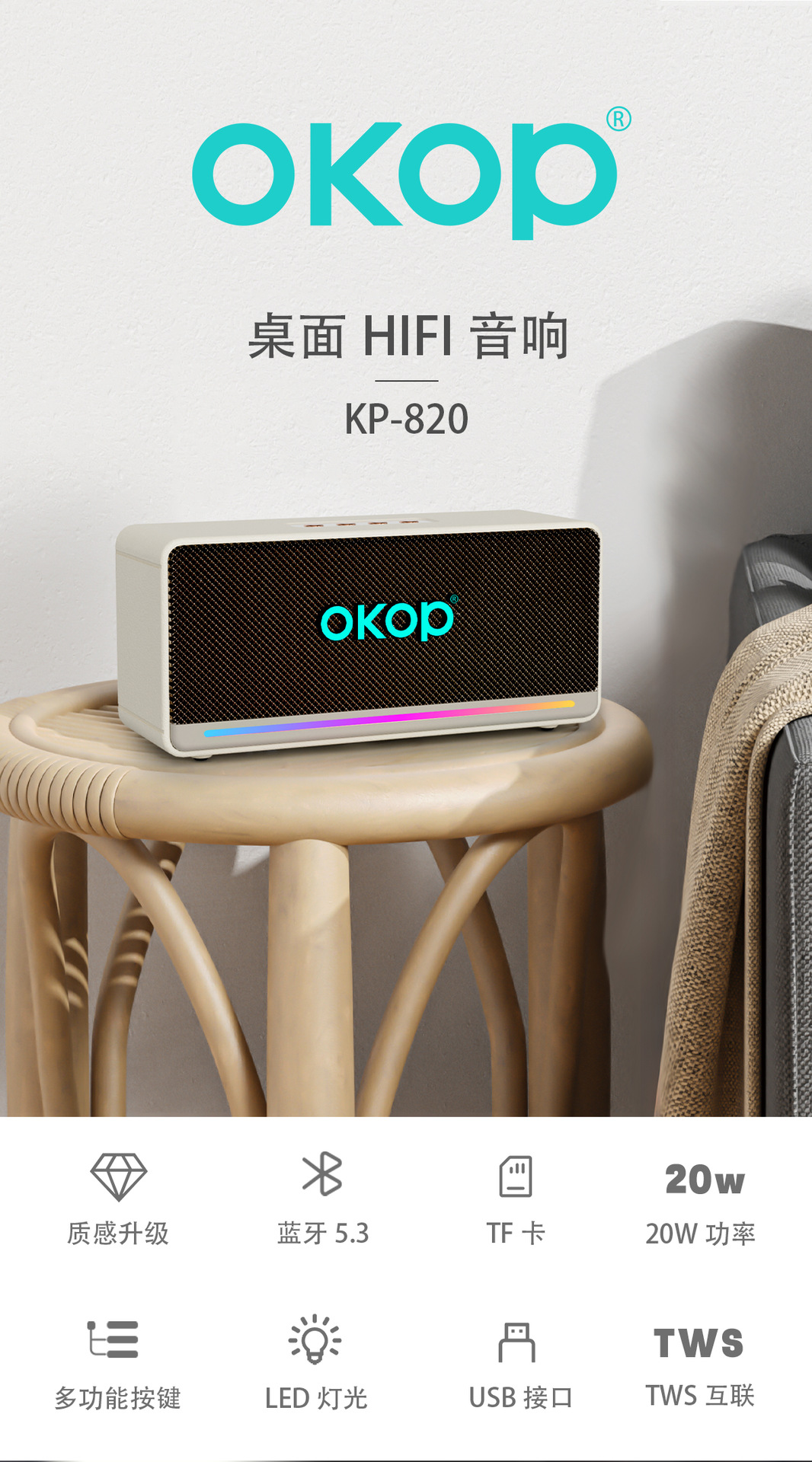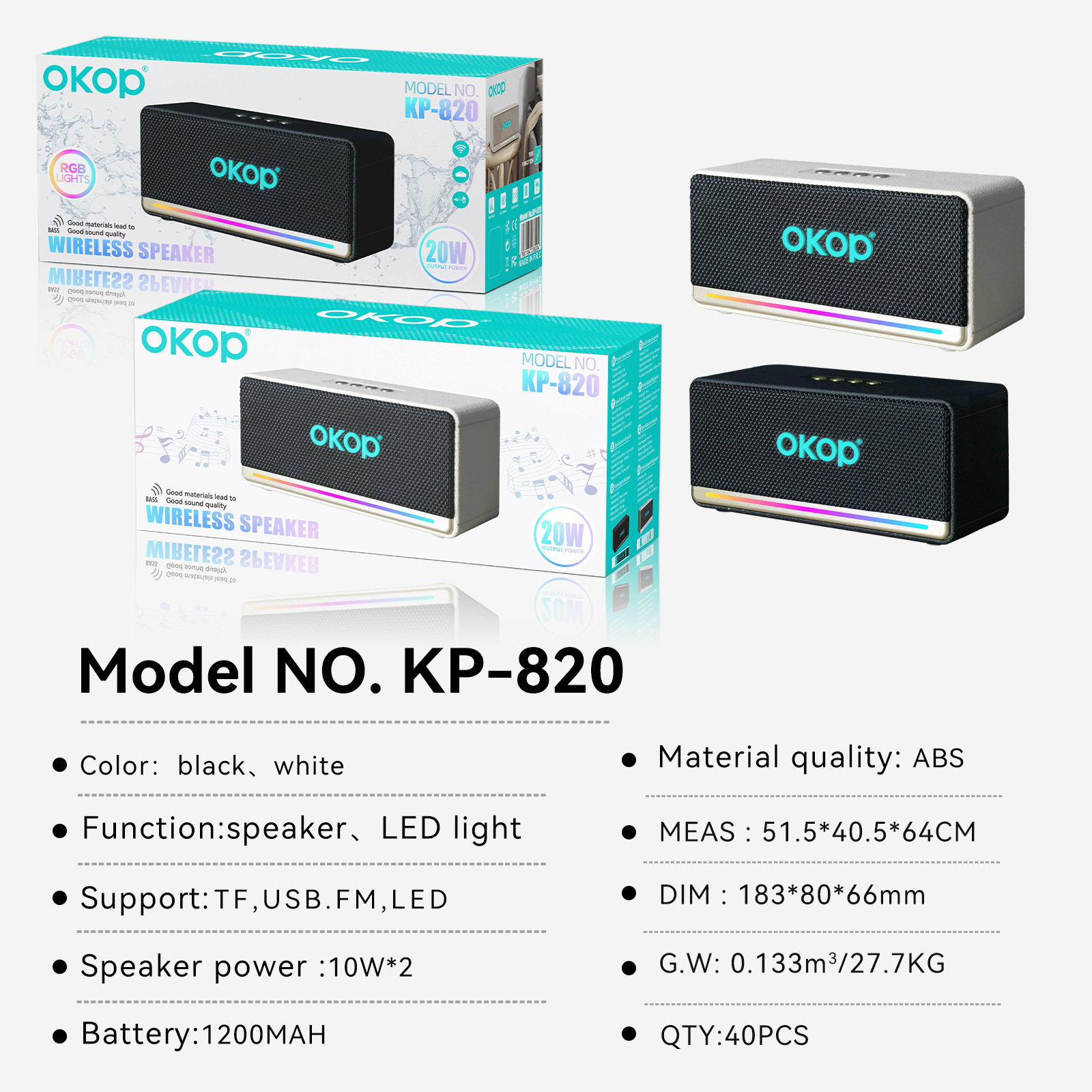 820蓝牙音响跨境爆款户外防水家用桌面大音量持久续航RGB氛围灯