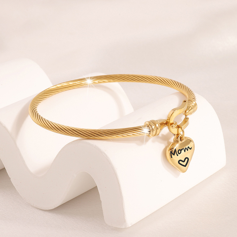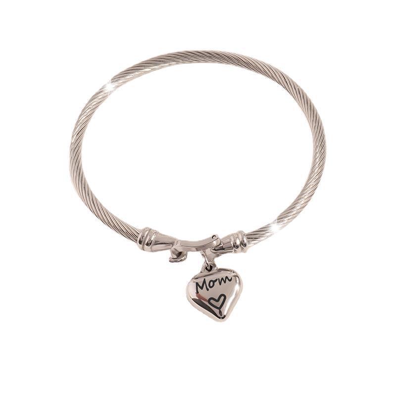 钛钢手镯麻花线桃心爱心刻字英文精致不锈钢女生高级感小众风手环