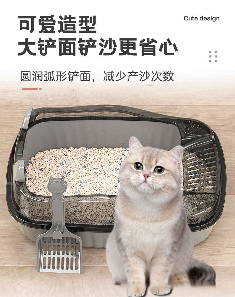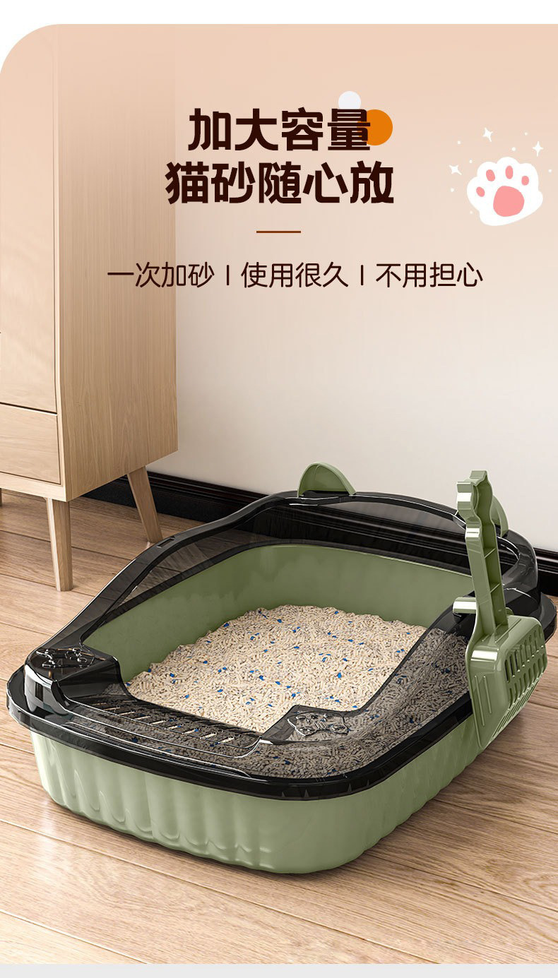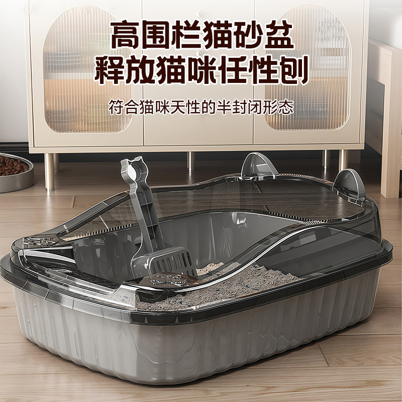 宠物猫砂盆猫咪开放式防外溅厕所小号幼猫高围栏加大半封闭猫砂盆