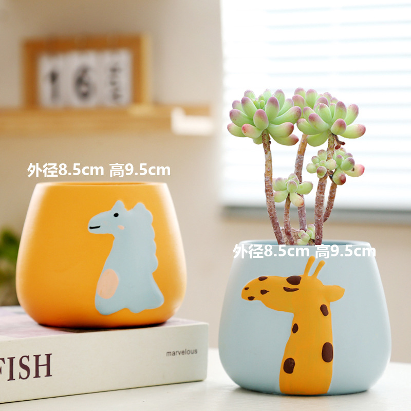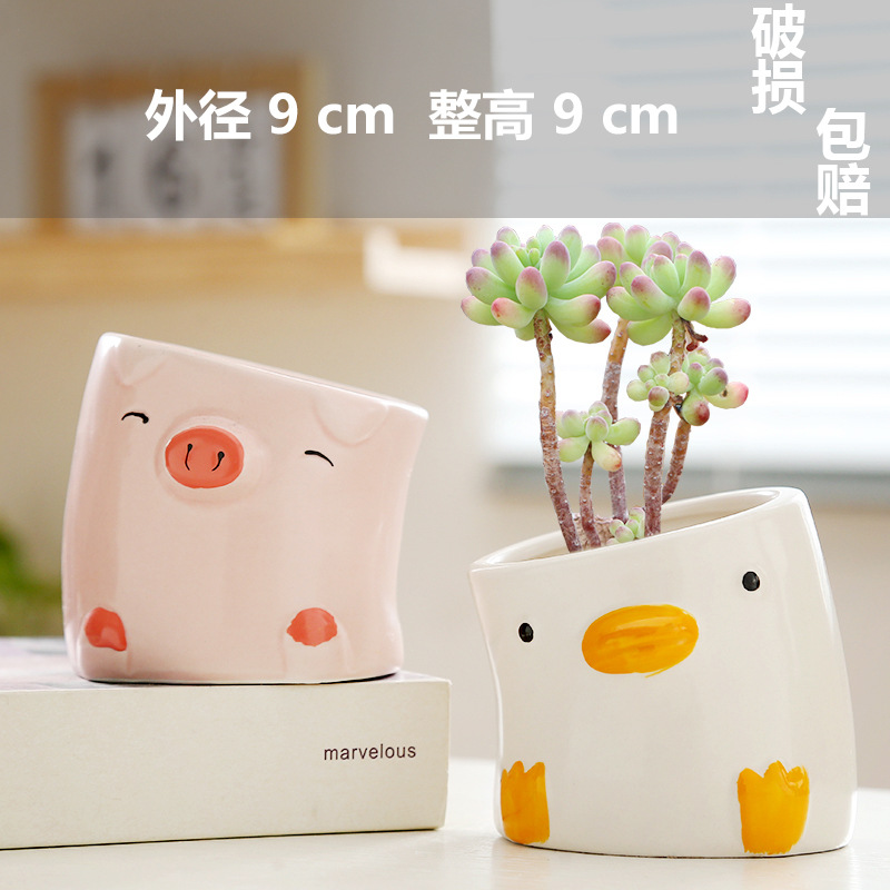 卡通动物多肉陶瓷花盆特价清仓精致小盆大口径可爱多肉专用盆家用
