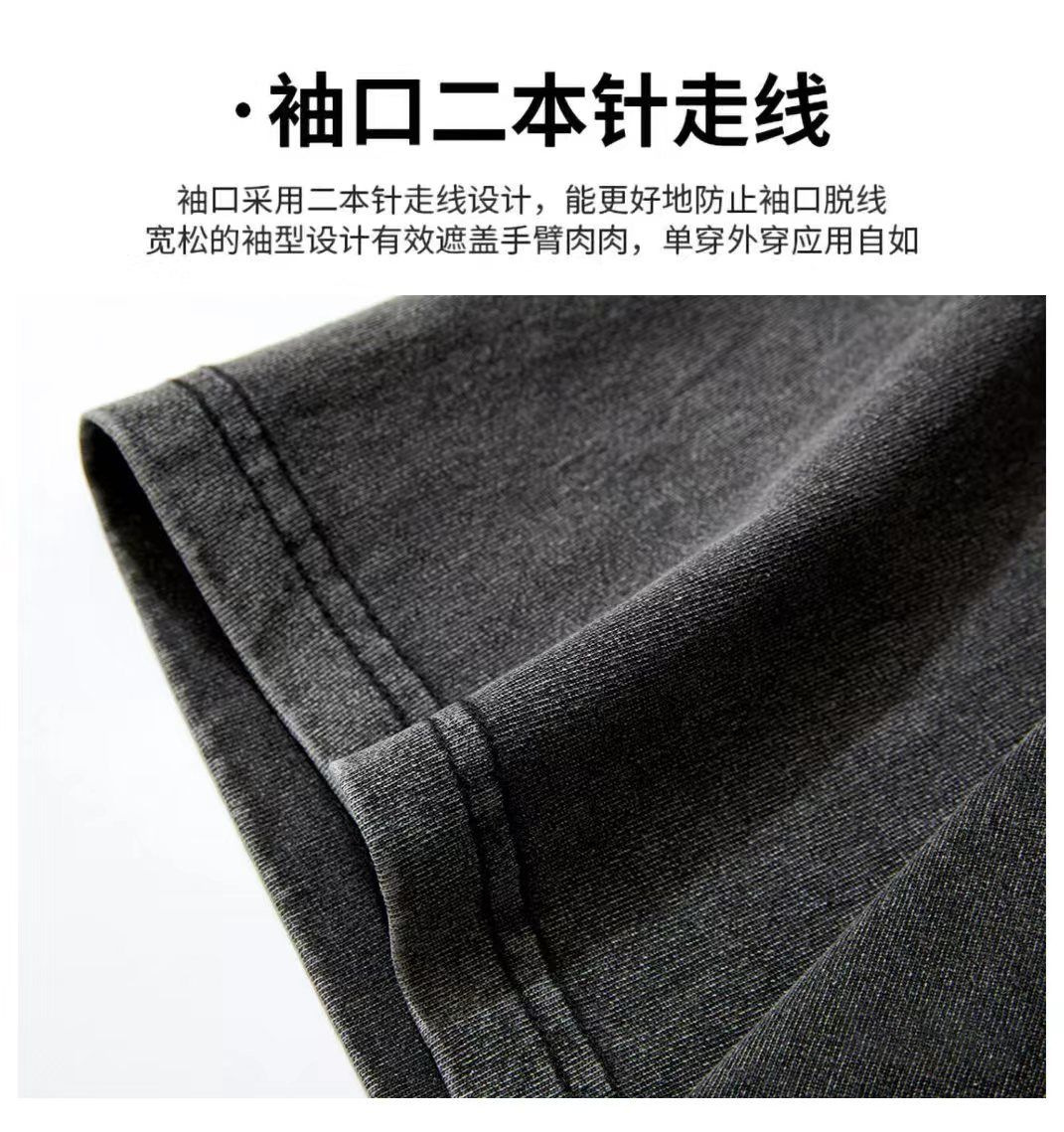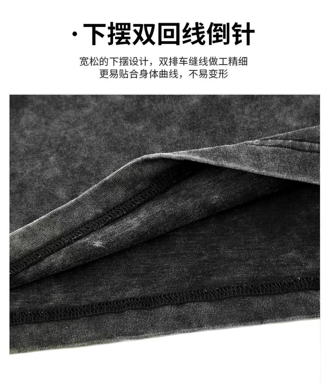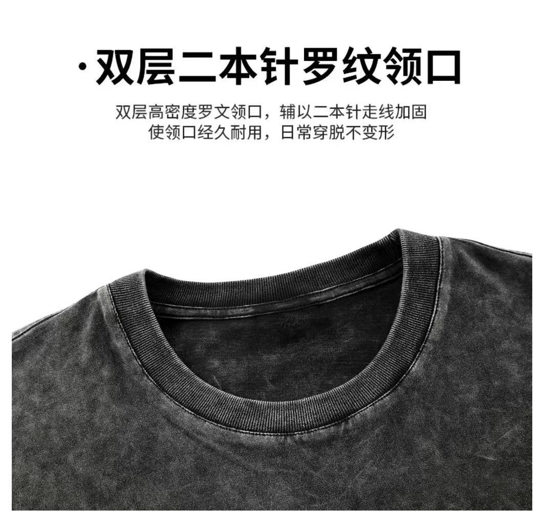 重磅水洗做旧纯棉短袖T恤后包条空白光版复古宽松大码男女通用款