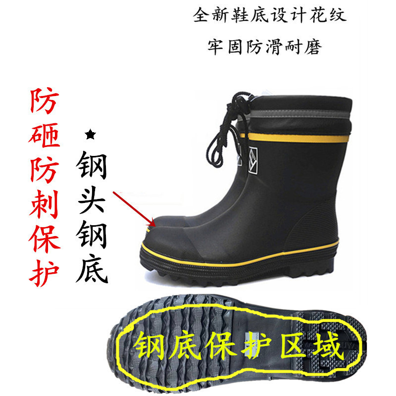 劳保水鞋男雨靴防刺伤抗砸钢包头钢底橡胶雨鞋中筒雨靴钓鱼鞋工地
