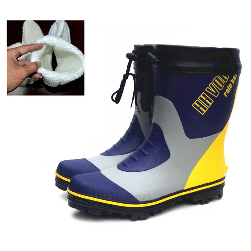钢钉底橡胶雨鞋男士钓鱼水鞋高筒时尚花式雨靴防雨鞋