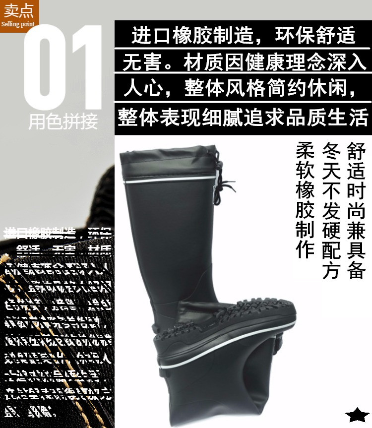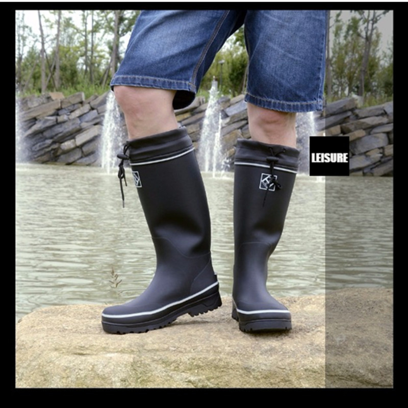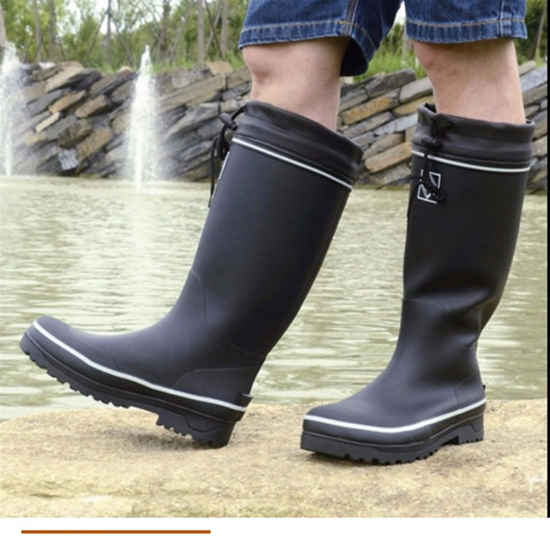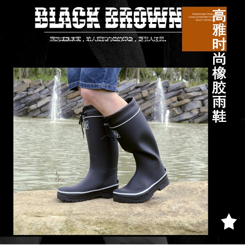 HH-010超高男雨鞋黑色橡胶雨靴时尚外贸水鞋柔软厚底舒适透气户外