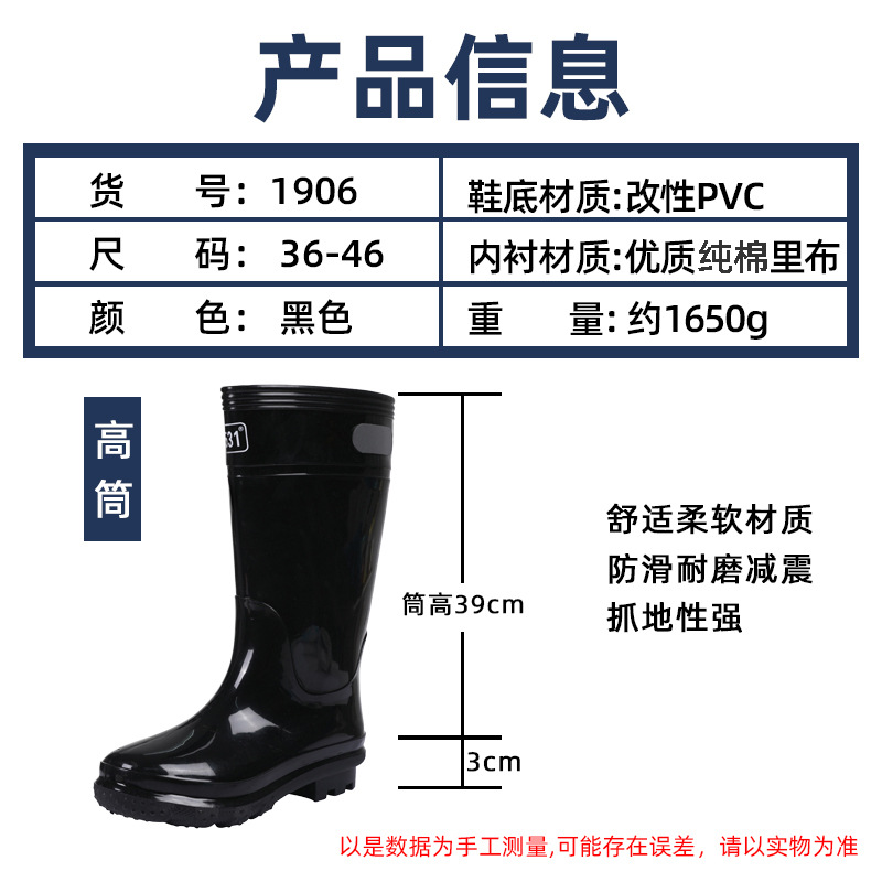 3531高筒雨鞋男女1906加厚劳保雨靴钓鱼洗车防水鞋防滑牛筋底胶鞋