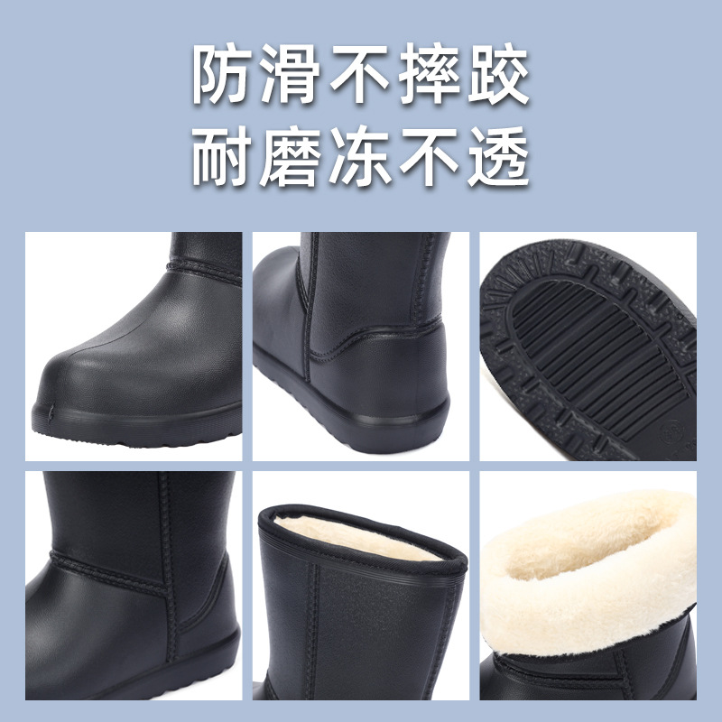 澳特踏雨EVA中筒雨鞋902黑冬季加棉洗车胶鞋防滑钓鱼水鞋劳保雨靴