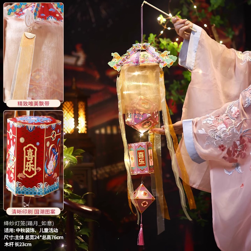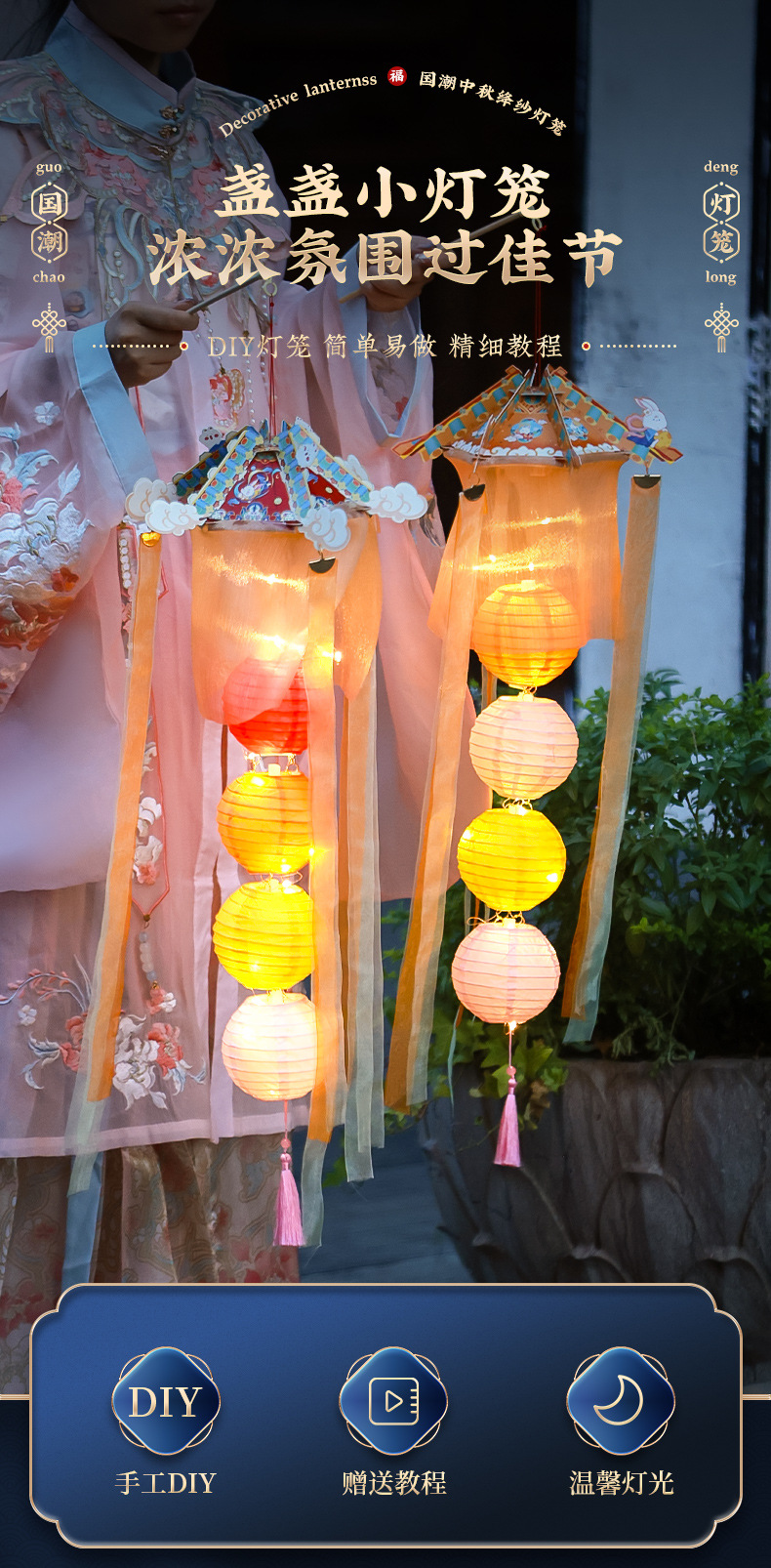 2025新款中秋节灯笼儿童手工diy材料包古风汉服户外手提花灯挂饰