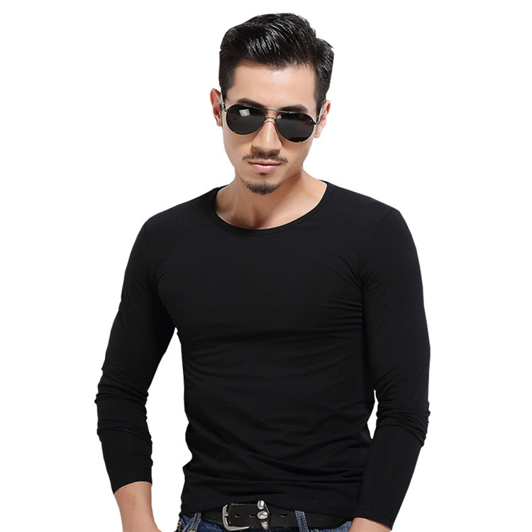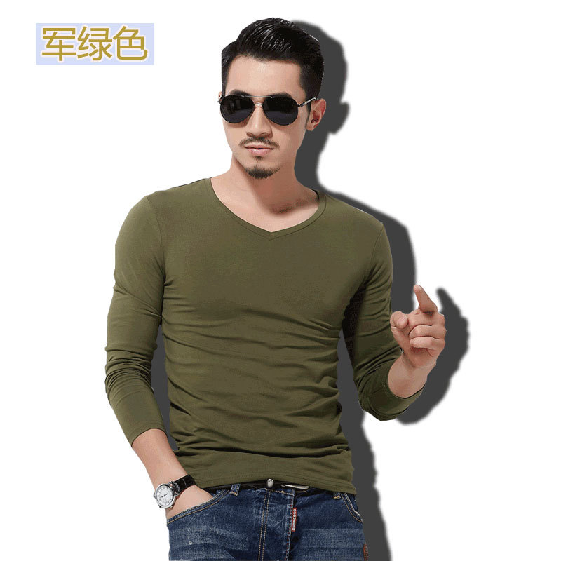 秋冬季军迷男式t恤长袖修身纯色圆领套头原创男装打底衫厂家批发