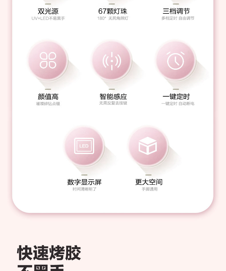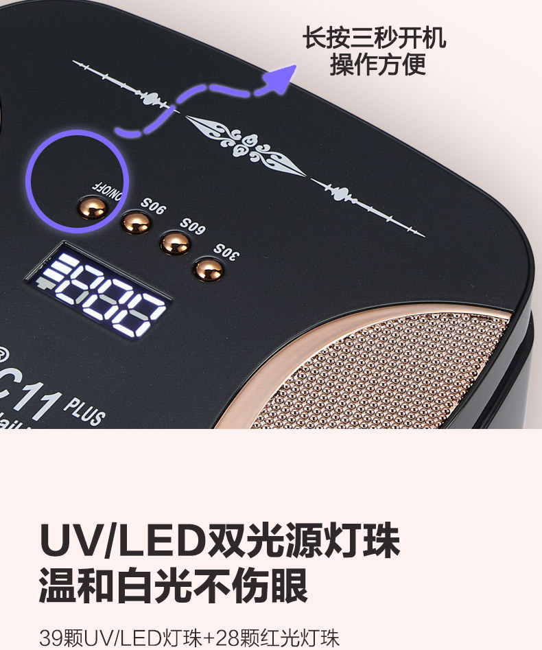 新款无线蓄电充电美甲灯大功率C11双光源+红光灯珠美甲灯烤灯UV