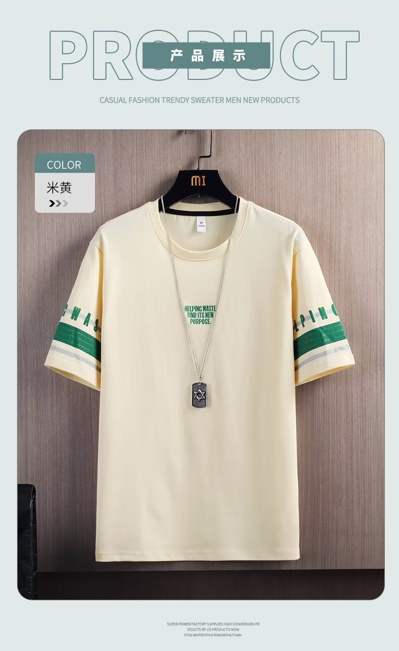 男士短袖t恤夏季2024新款潮牌潮流修身半袖ins圆领体恤男装上衣服
