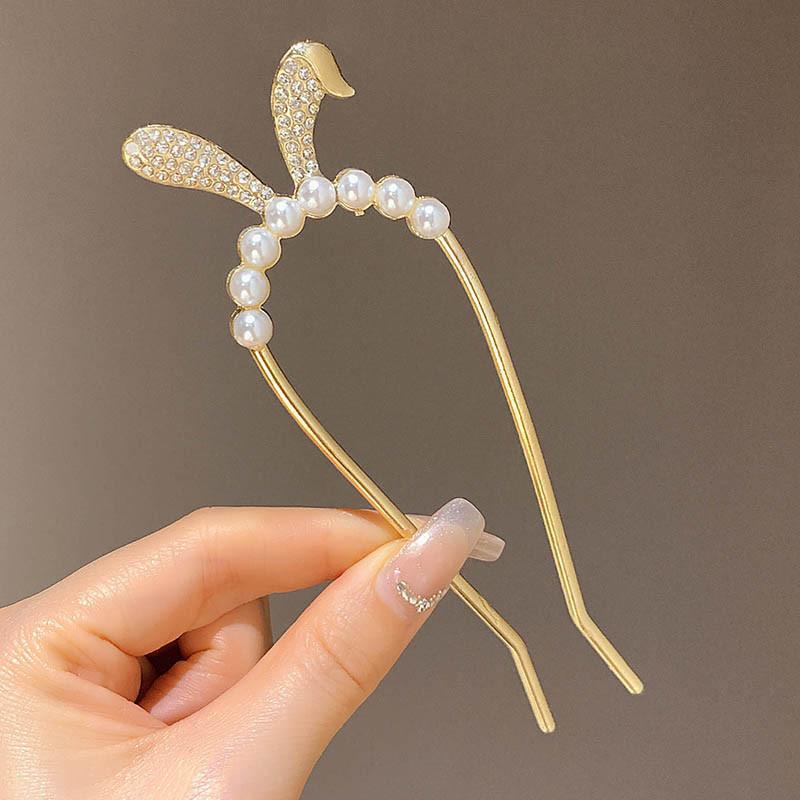 U型珍珠发簪女盘发高级感簪子2025年新款高端后脑勺发钗插梳头饰