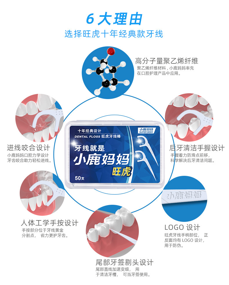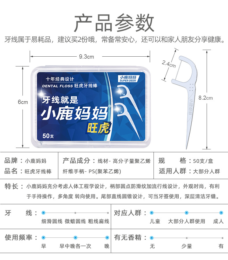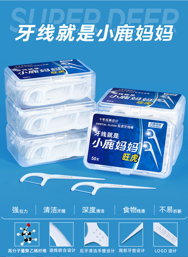小鹿妈妈 牙线 家庭装弓形塑料牙线签 超市剔牙线盒装牙线棒定 制